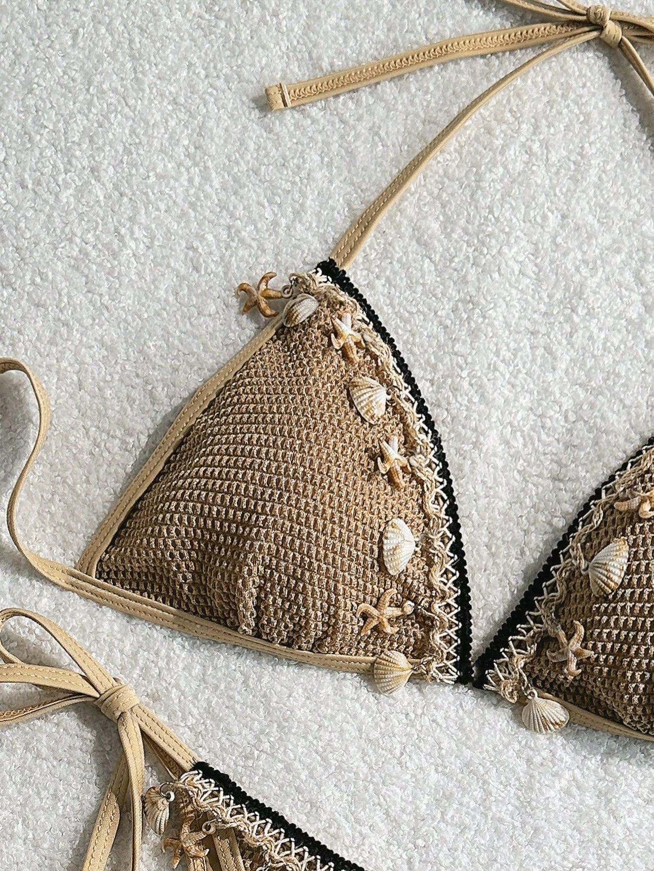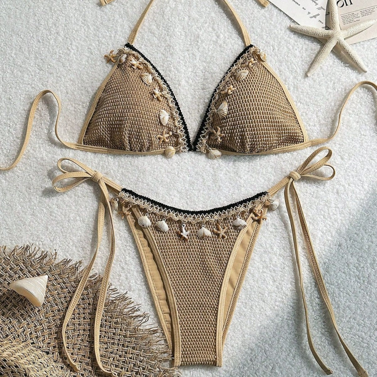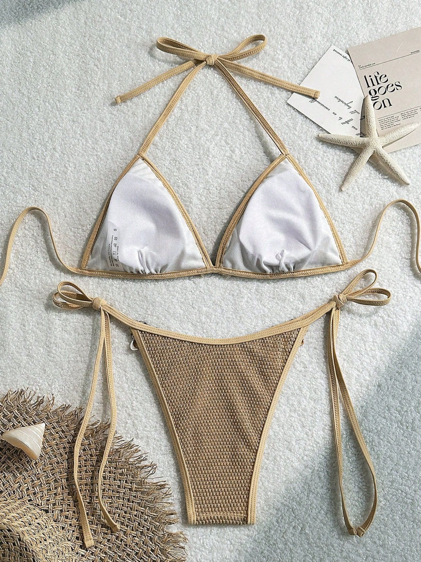 Swimsuit Women Lace up Halterneck Triangle Cup Beach Sexy Split Swimsuit Bikini