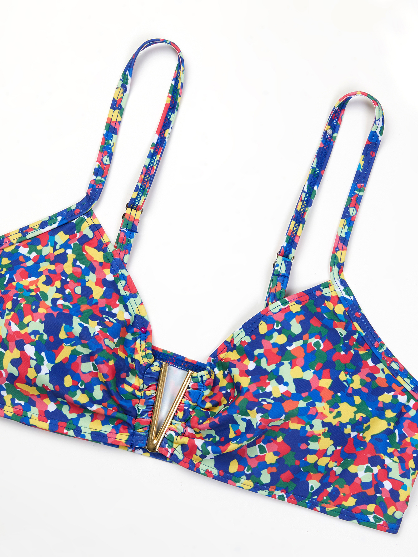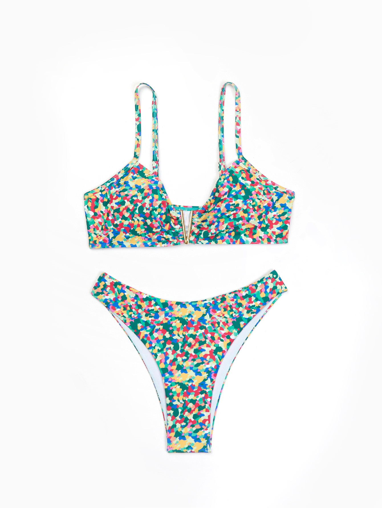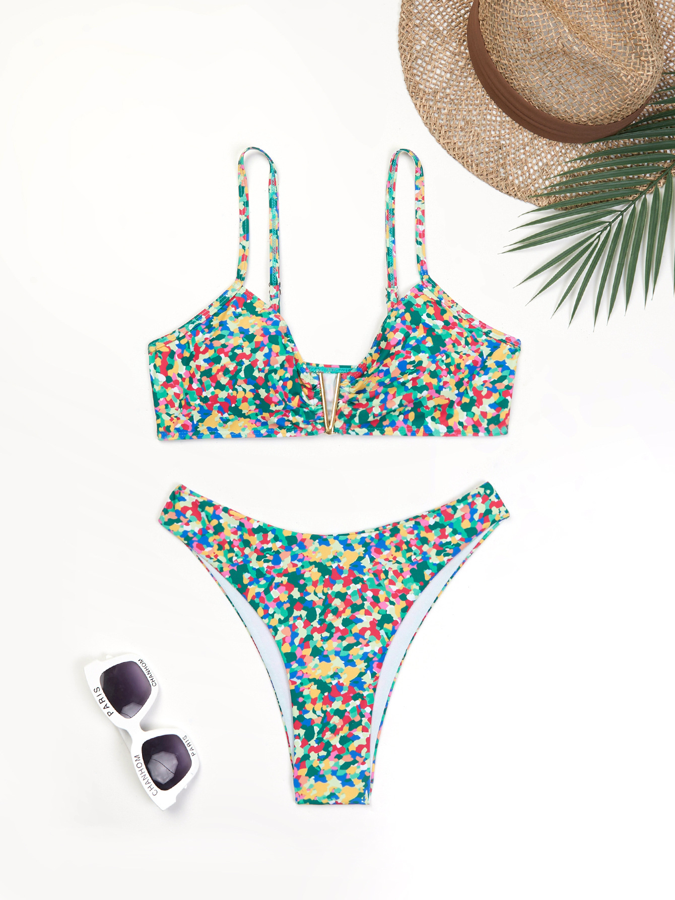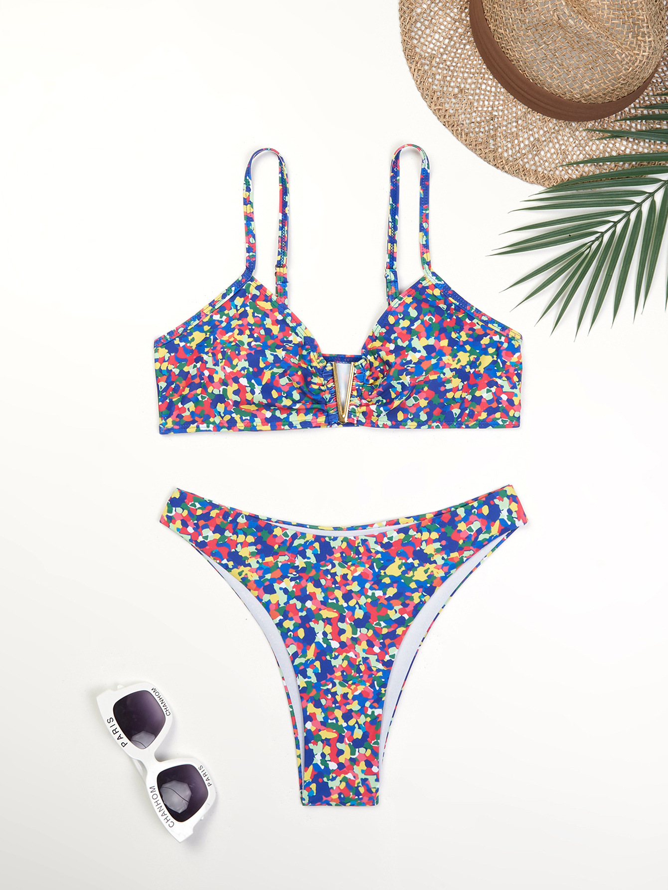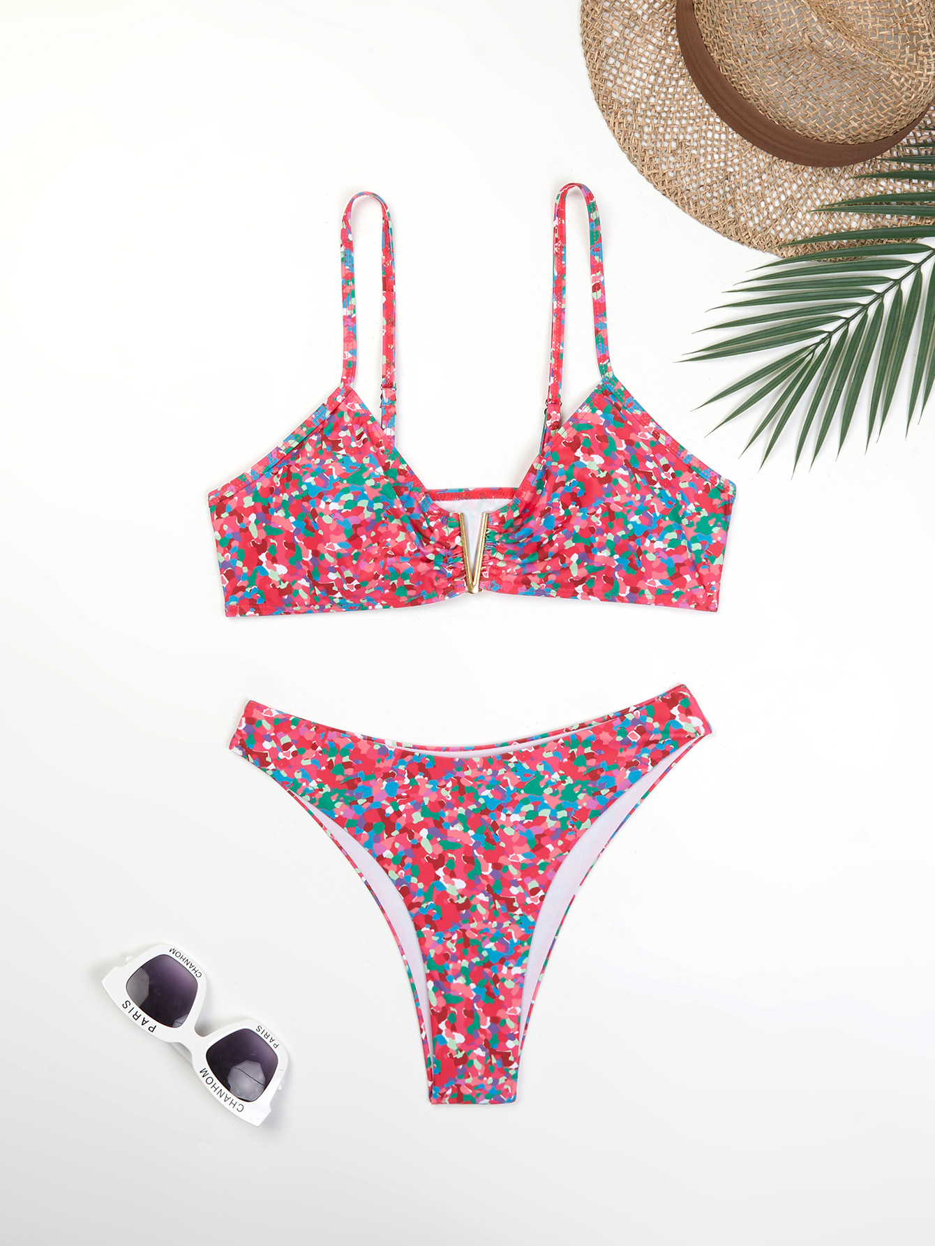 Traje de baño para mujer, traje de baño dividido de dos piezas, bikini estampado de metal en forma de U, bikini, traje de baño