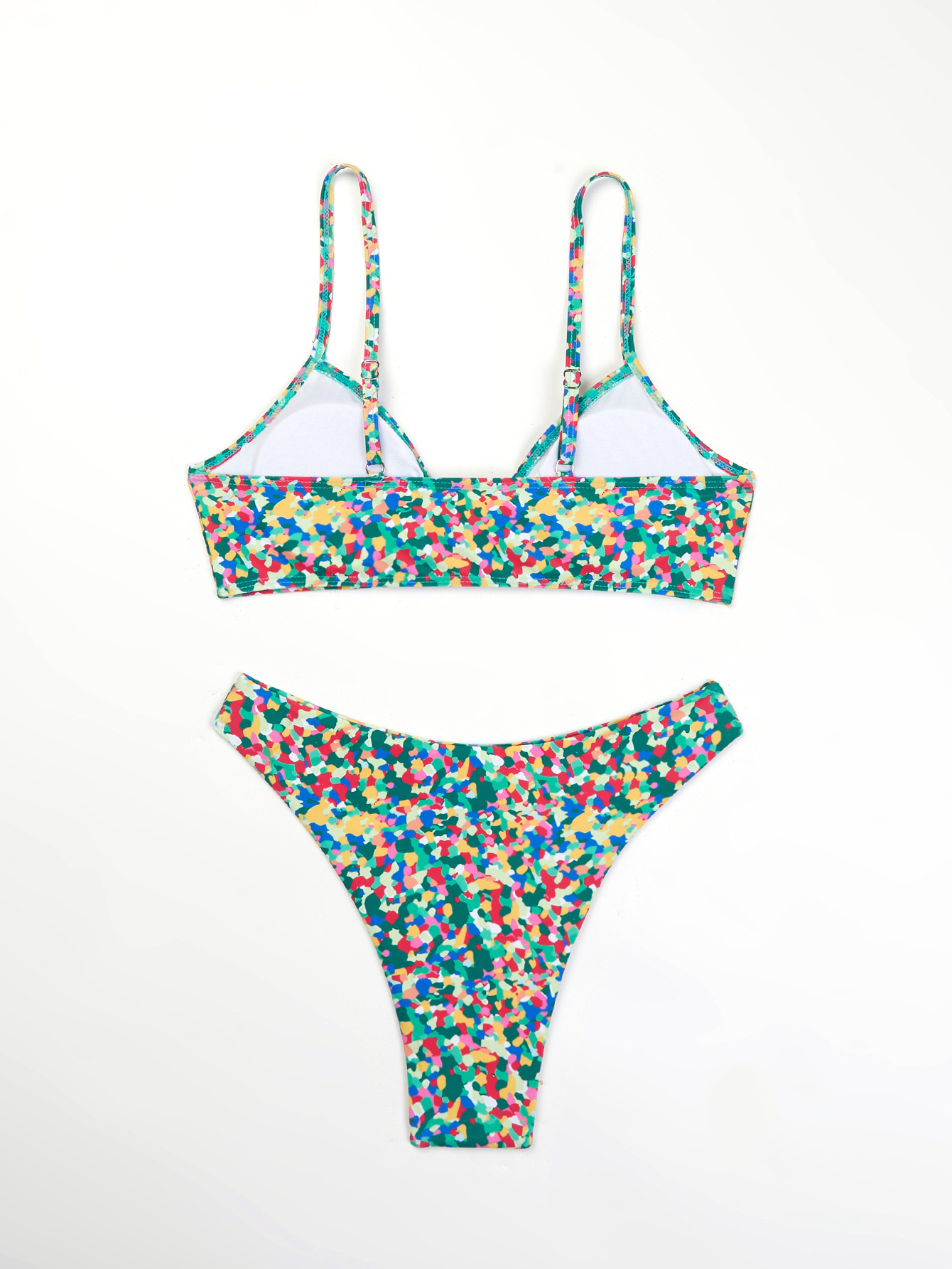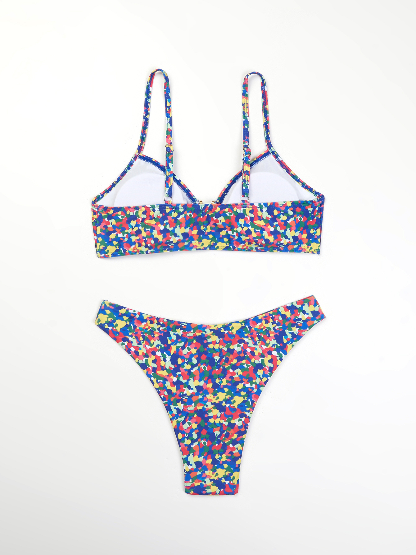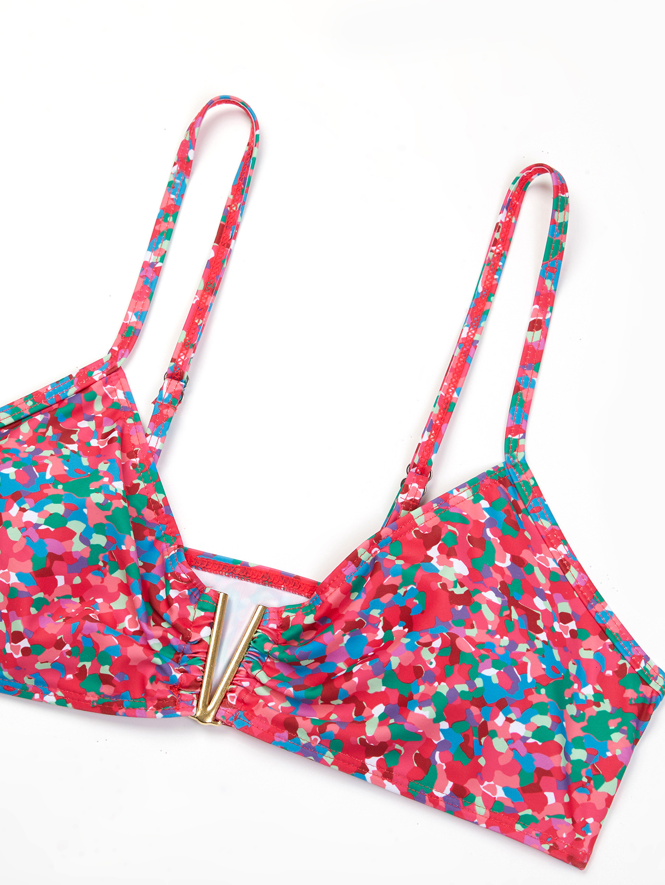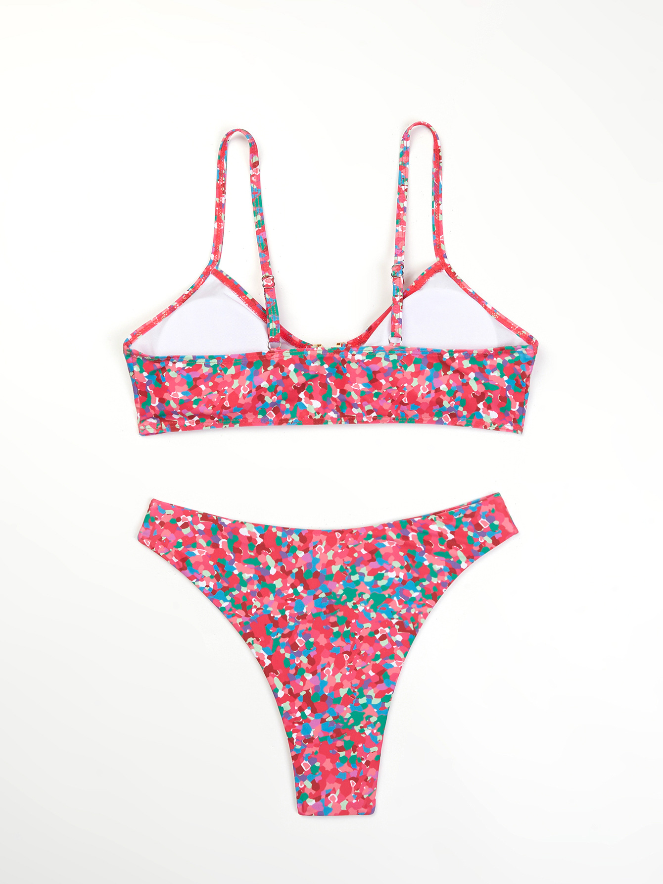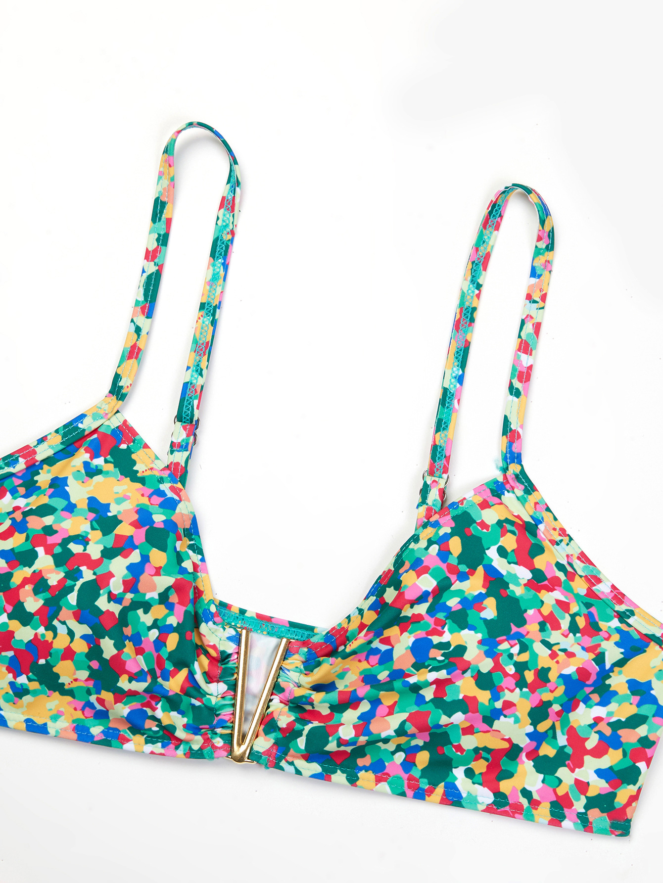 Traje de baño para mujer, traje de baño dividido de dos piezas, bikini estampado de metal en forma de U, bikini, traje de baño