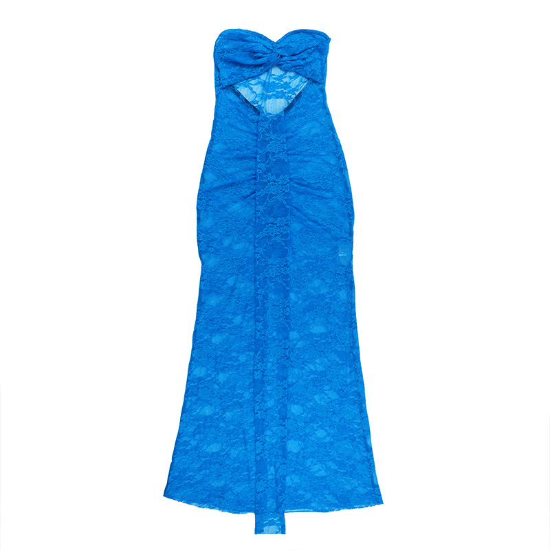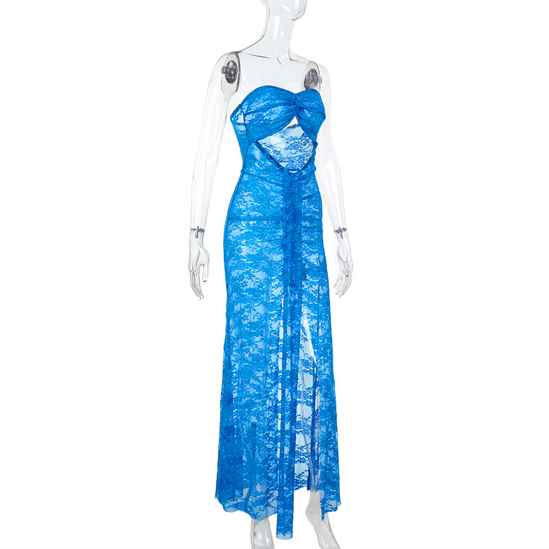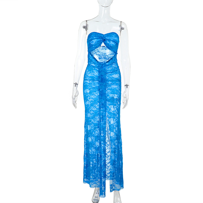 Vacation Lace Beach Dress Sexy Mesh Tube Top Hollow Out Cutout out See through Maxi Dress
