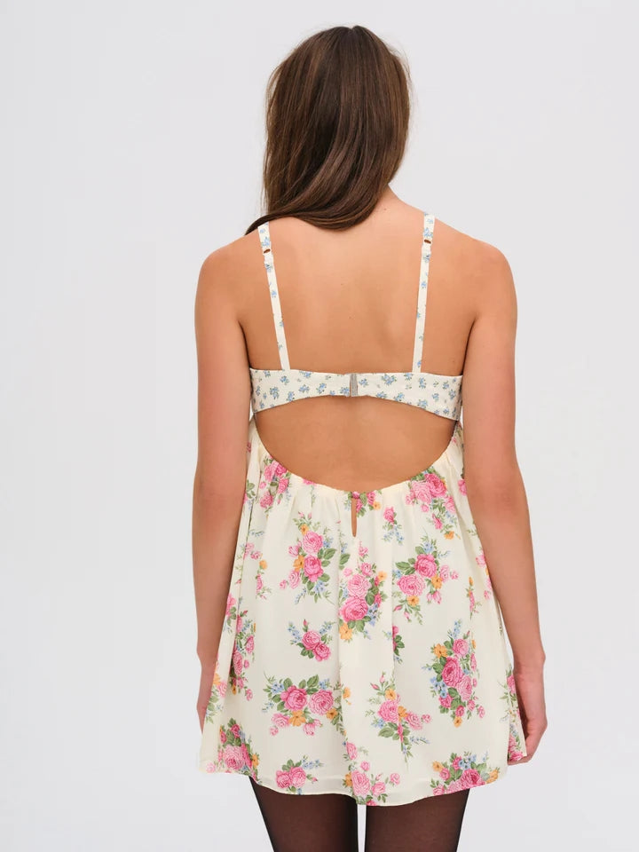 Vestido informal con tirantes, espalda descubierta, bordado y estampado en el pecho a juego para vacaciones de invierno
