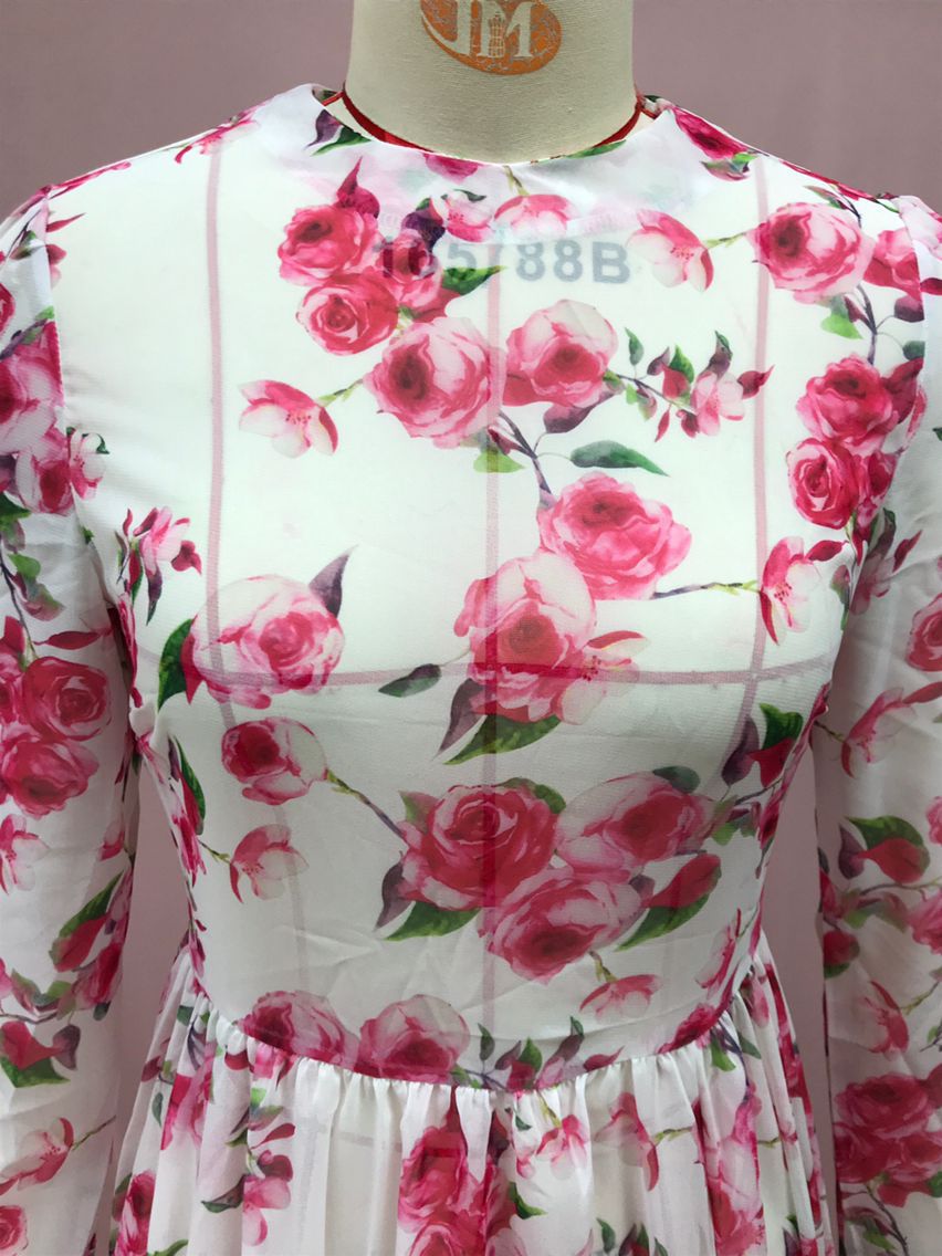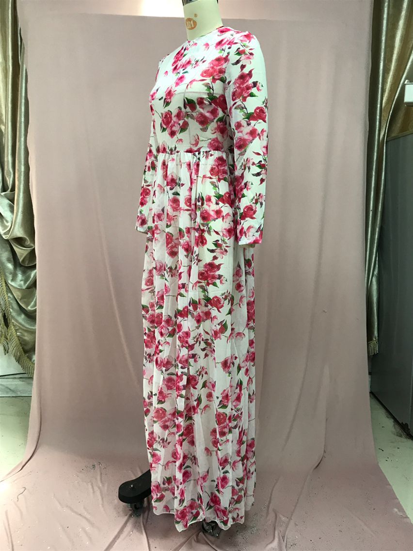 Women Clothing Print Large Swing Dress Slit Fashionable Maxi Dress Beach Dress