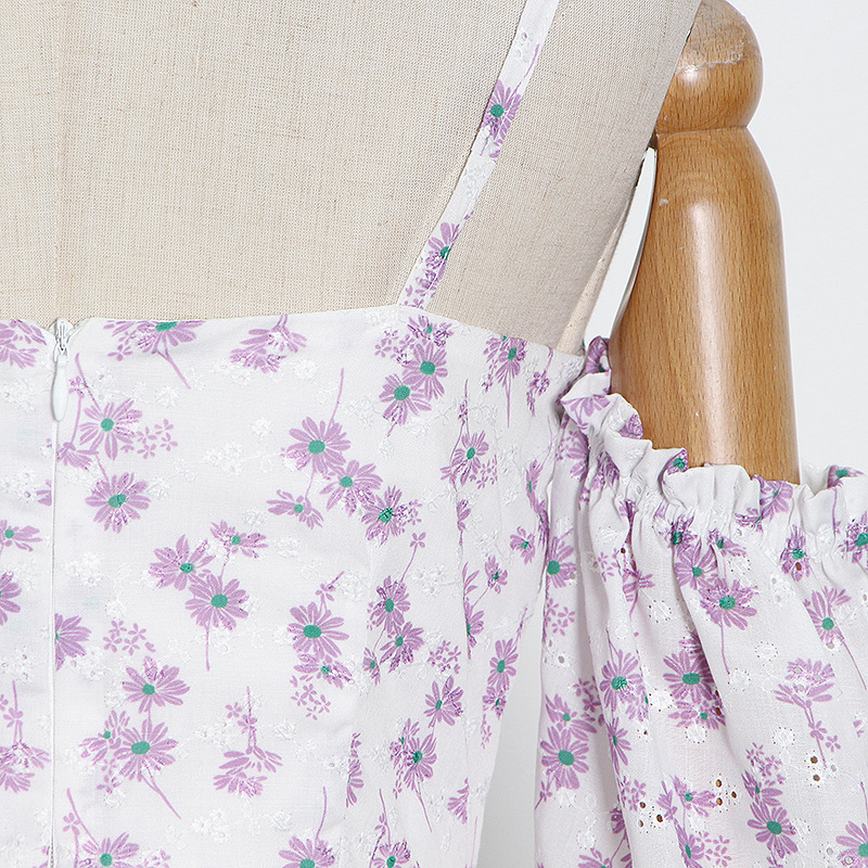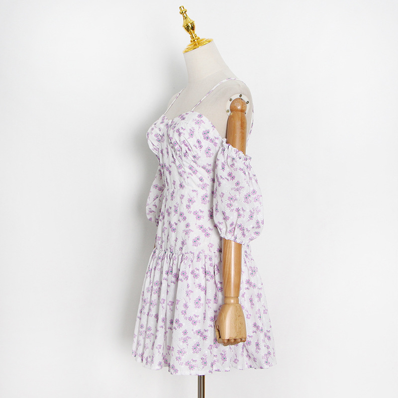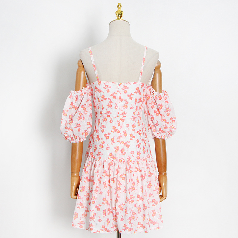 Vestido corto sexy con hombros descubiertos y estampado floral, diseño elegante, tirantes finos, corte A