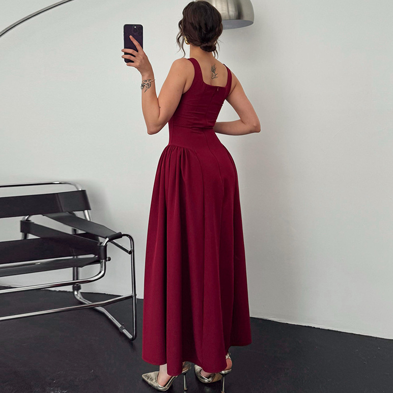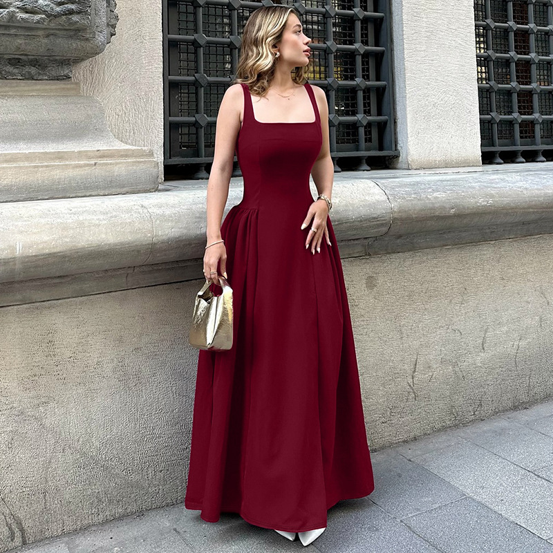 Women Clothing Summer Sexy Backless Zipper Slim Fit Waist Shoulder Strap Dress
