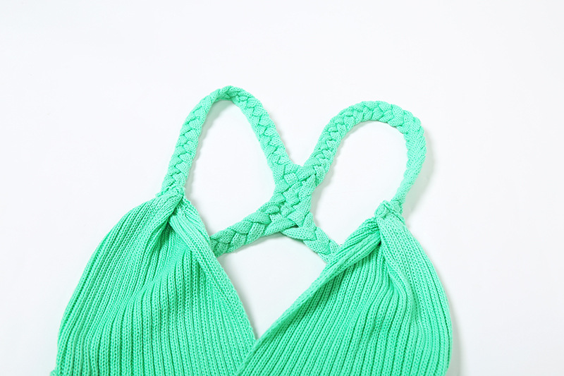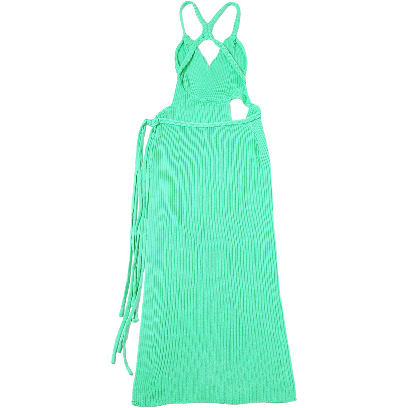 Women Clothing Summer Sexy Solid Color V neck Hollow Out Cutout Slim Knit Tassel Side Split Dress