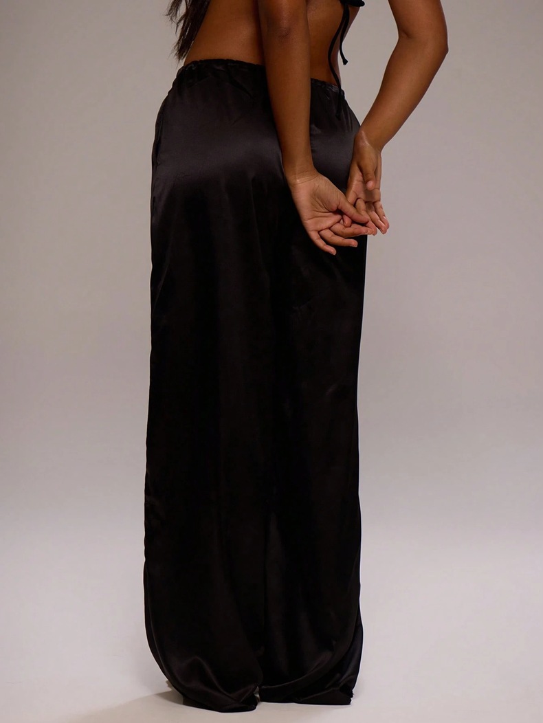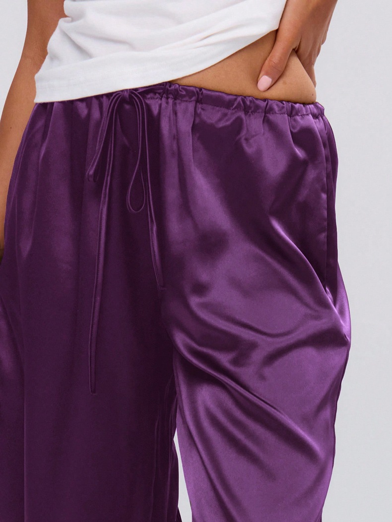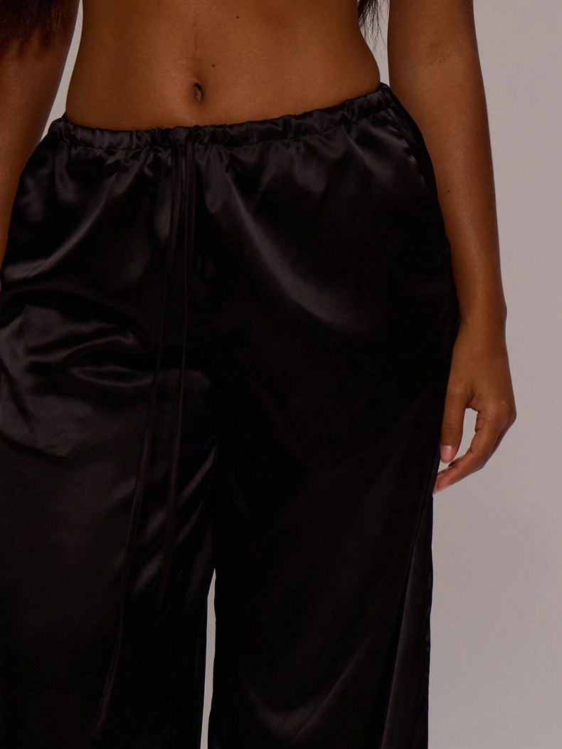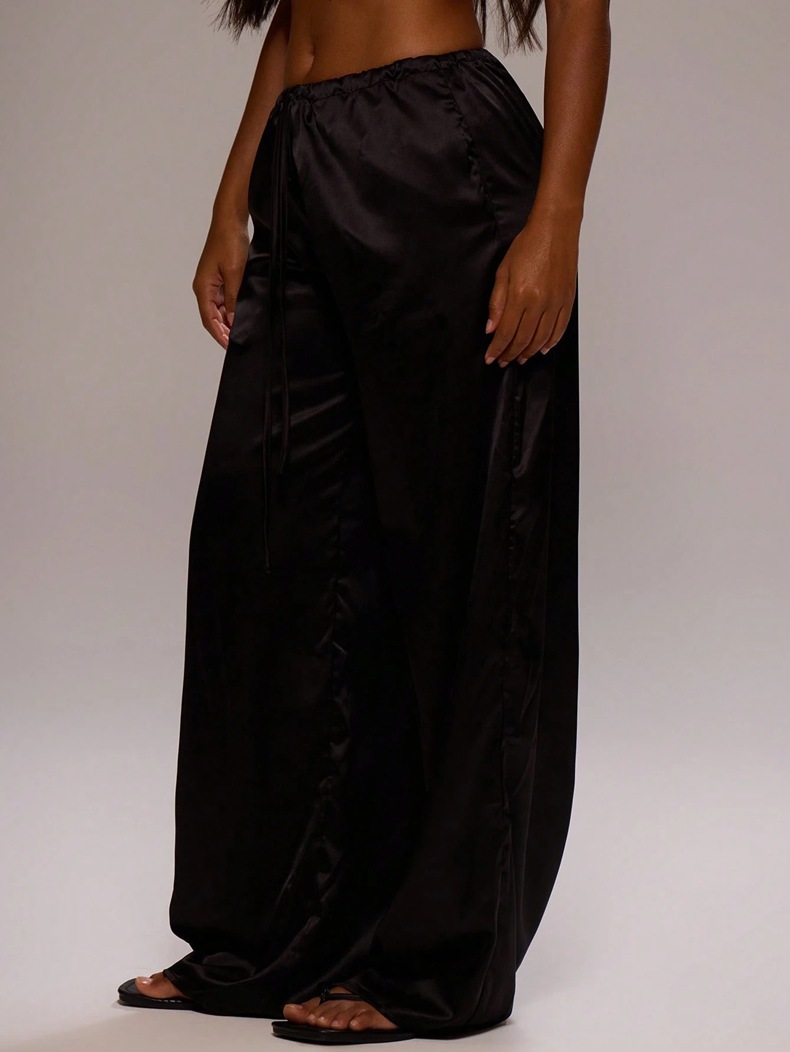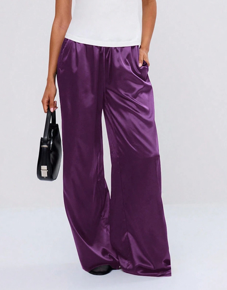 Women Clothing Trendy Autumn Satin Satin Casual Pants Loose Wide Leg Drawstring Long Pants