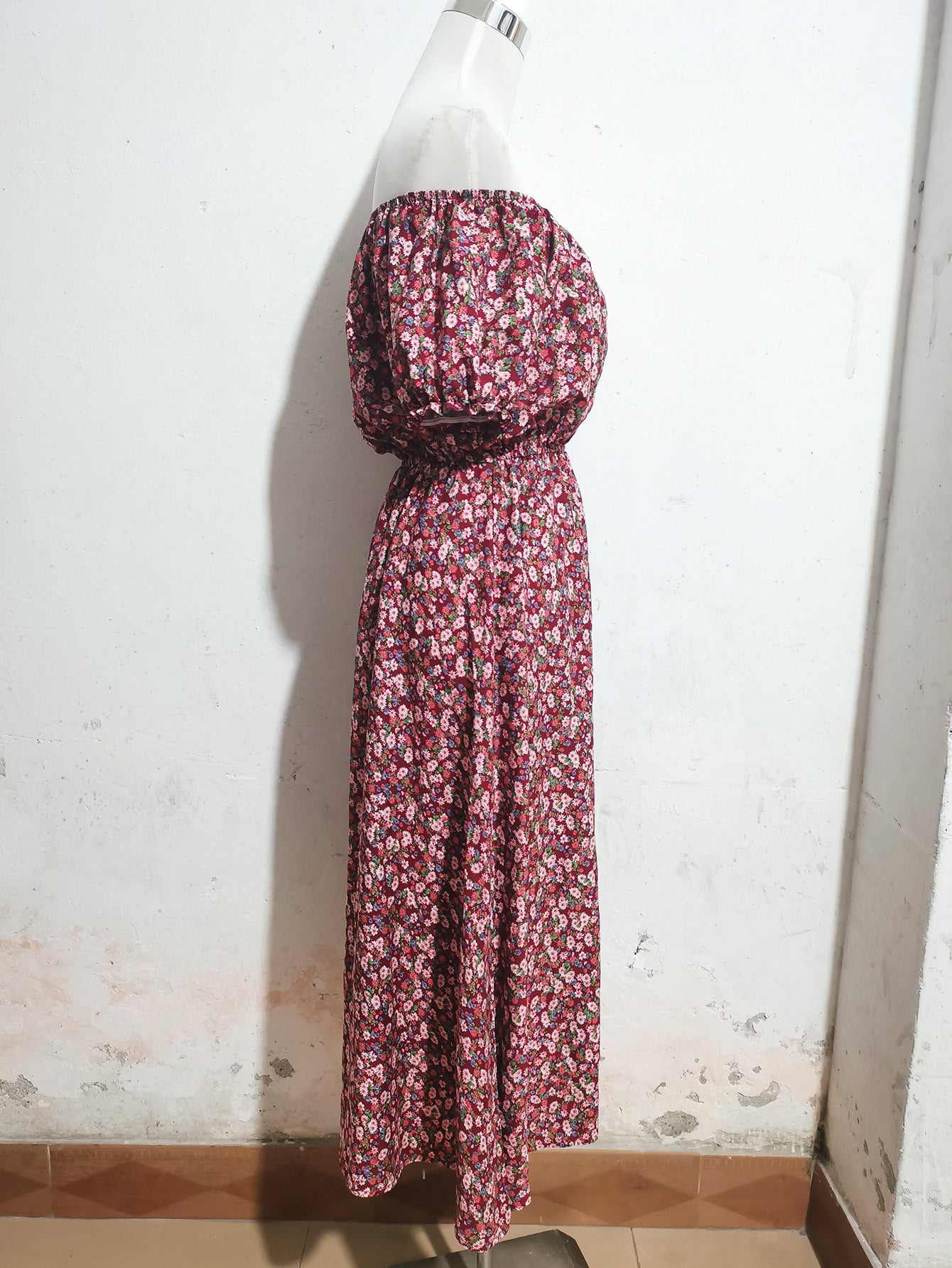 Vestido de verano de manga corta con hombros descubiertos y estampado para mujer