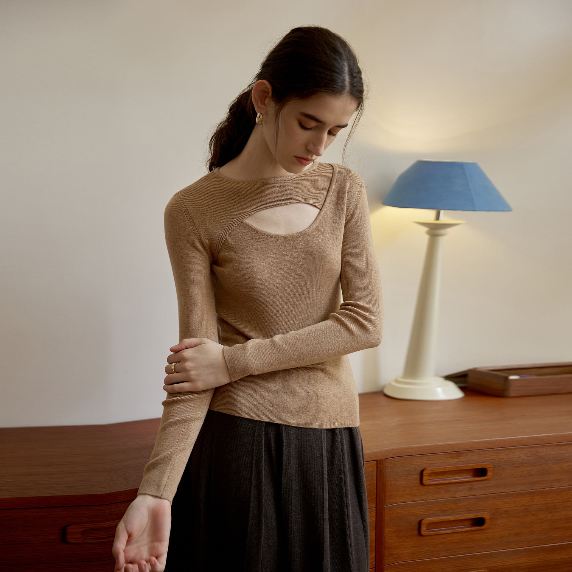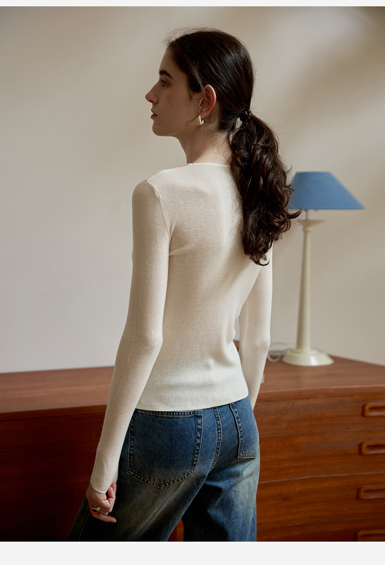 Wool Top Autumn Winter Design Slim Bottoming Shirt Gentle Long Sleeve Sweater Hollow Out Cutout Sweater