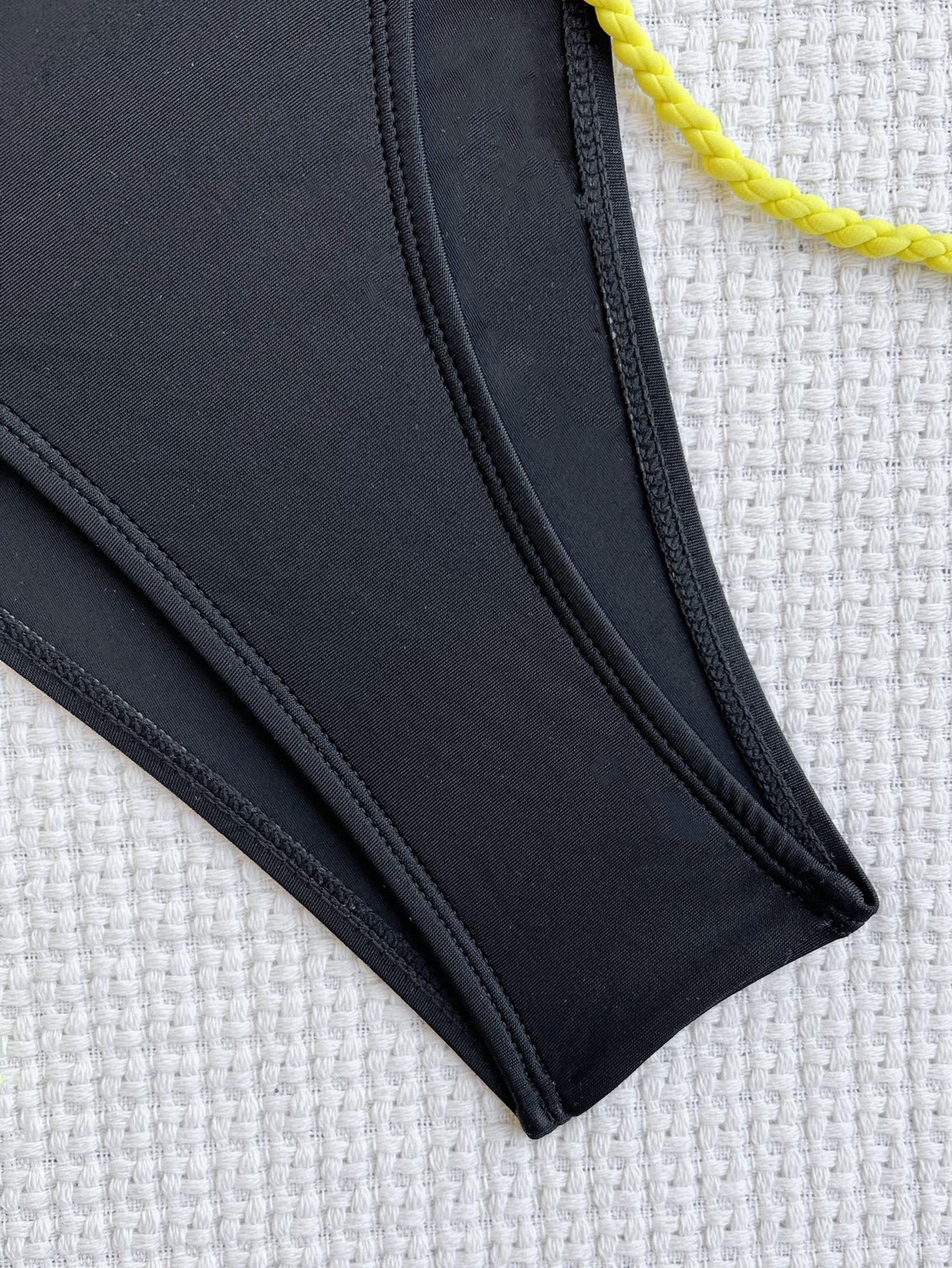 Bikini doble de una pieza, traje de baño tipo halter, traje de baño de un solo hombro para mujer, bikini de color liso