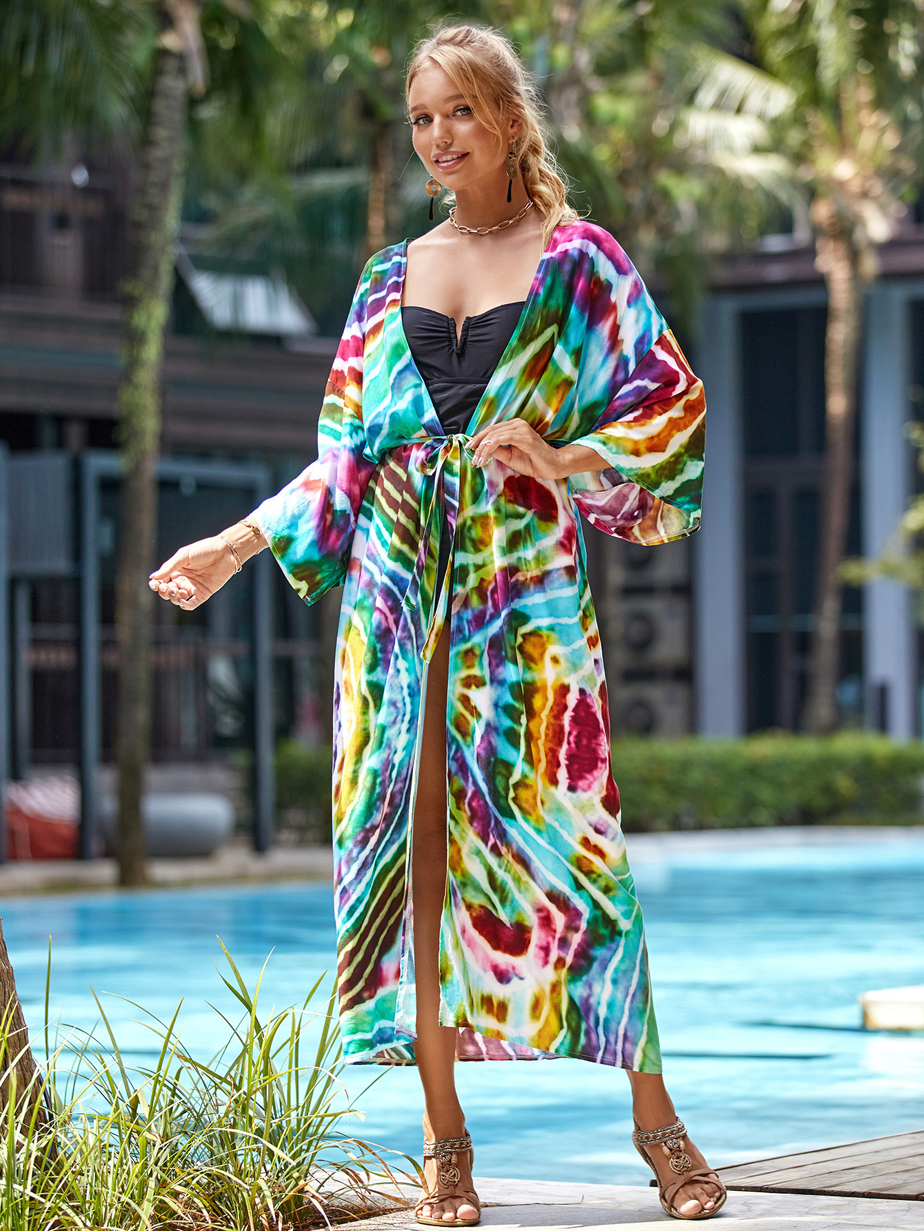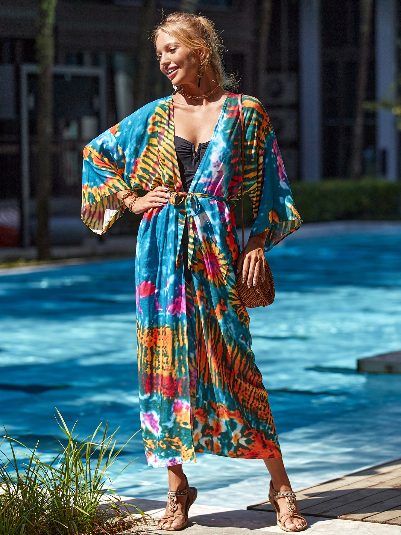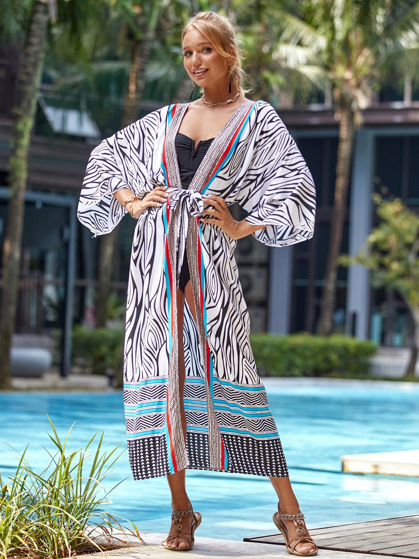 Cárdigan playero holgado y sexy con estampado de rayón para vacaciones, para bikini