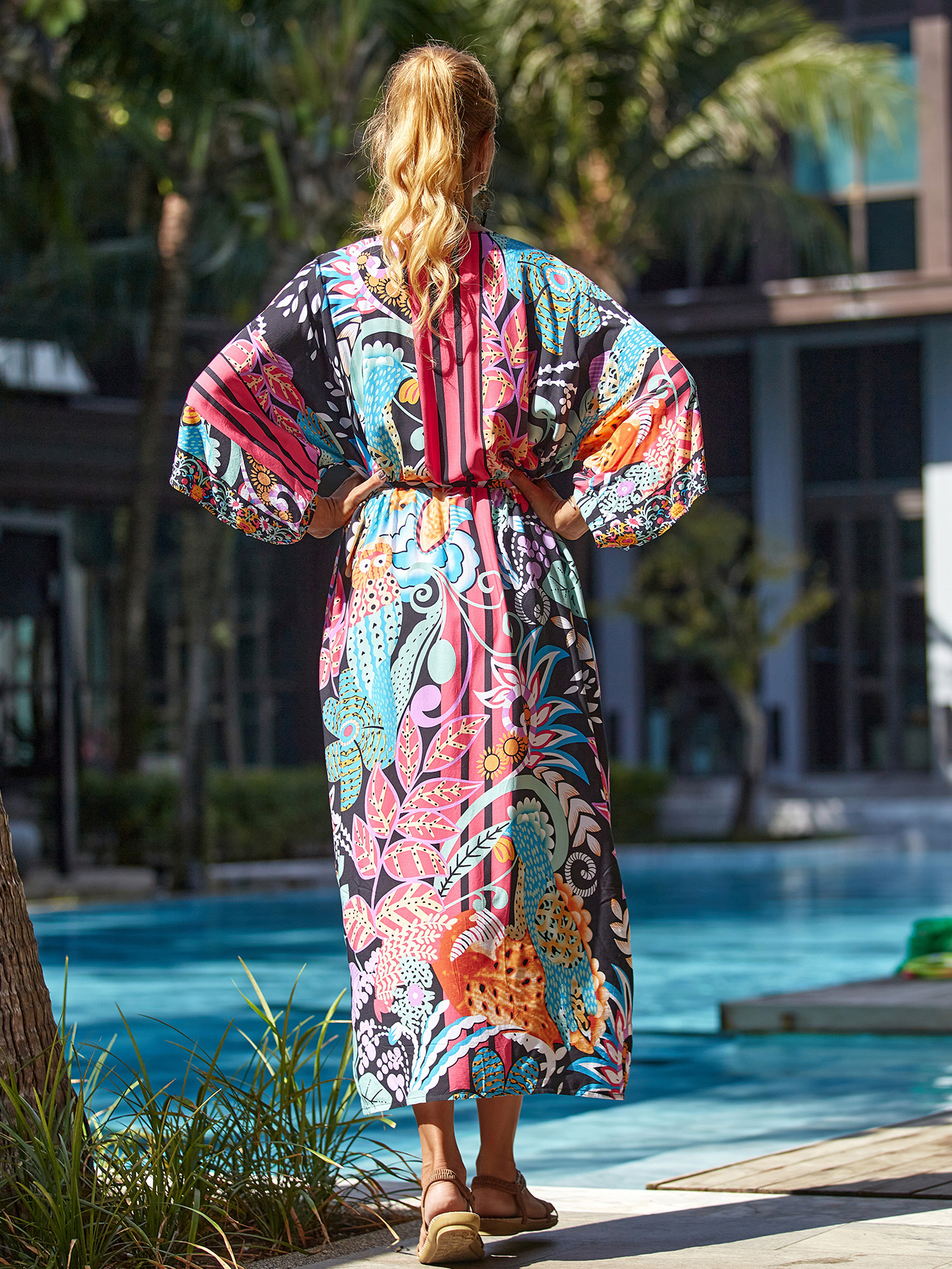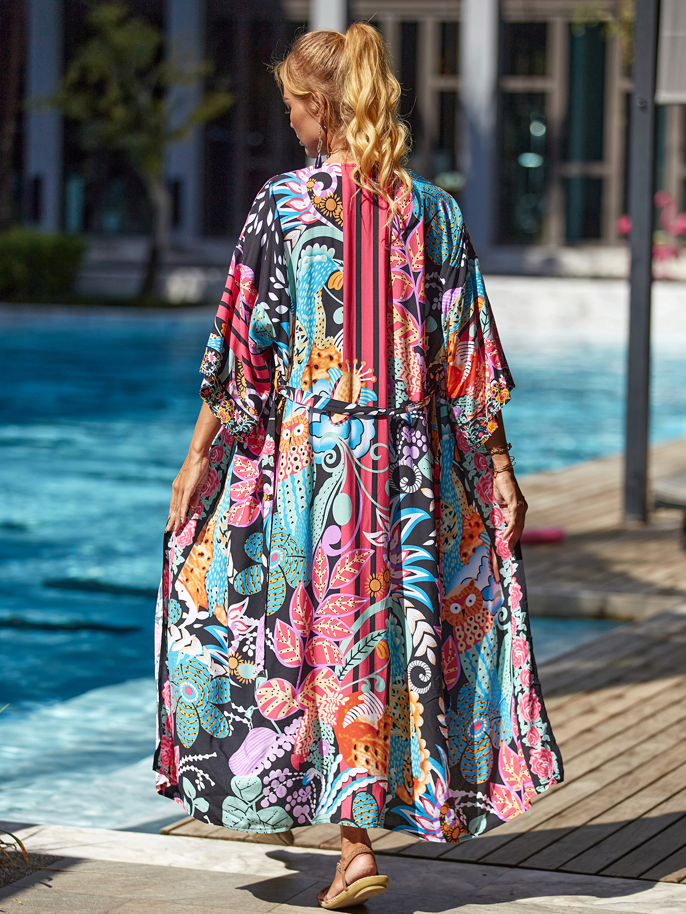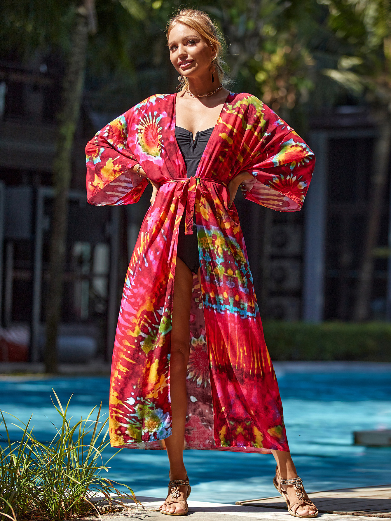 Cárdigan playero holgado y sexy con estampado de rayón para vacaciones, para bikini