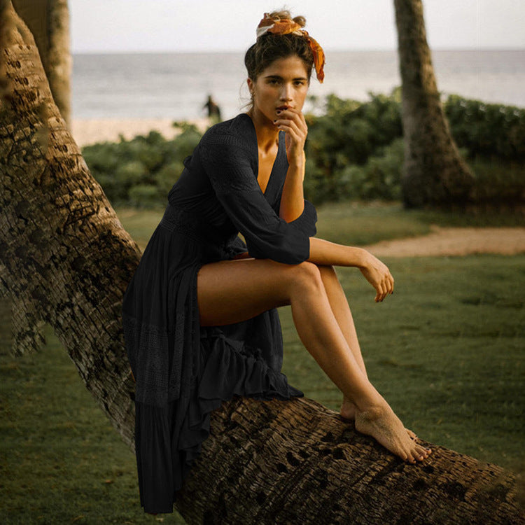 Vestido playero con botones de encaje y costuras de rayón, vestido playero para vacaciones, camisa de protección solar