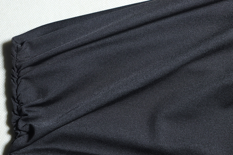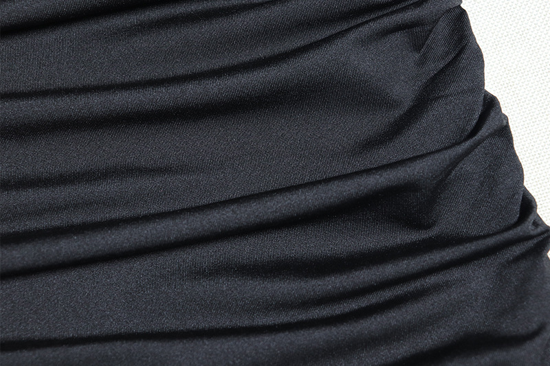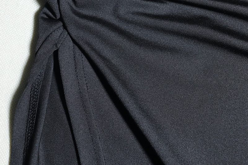 Vestido sexy de color liso con cuello diagonal y costuras, manga corta, plisado, cintura media, asimétrico