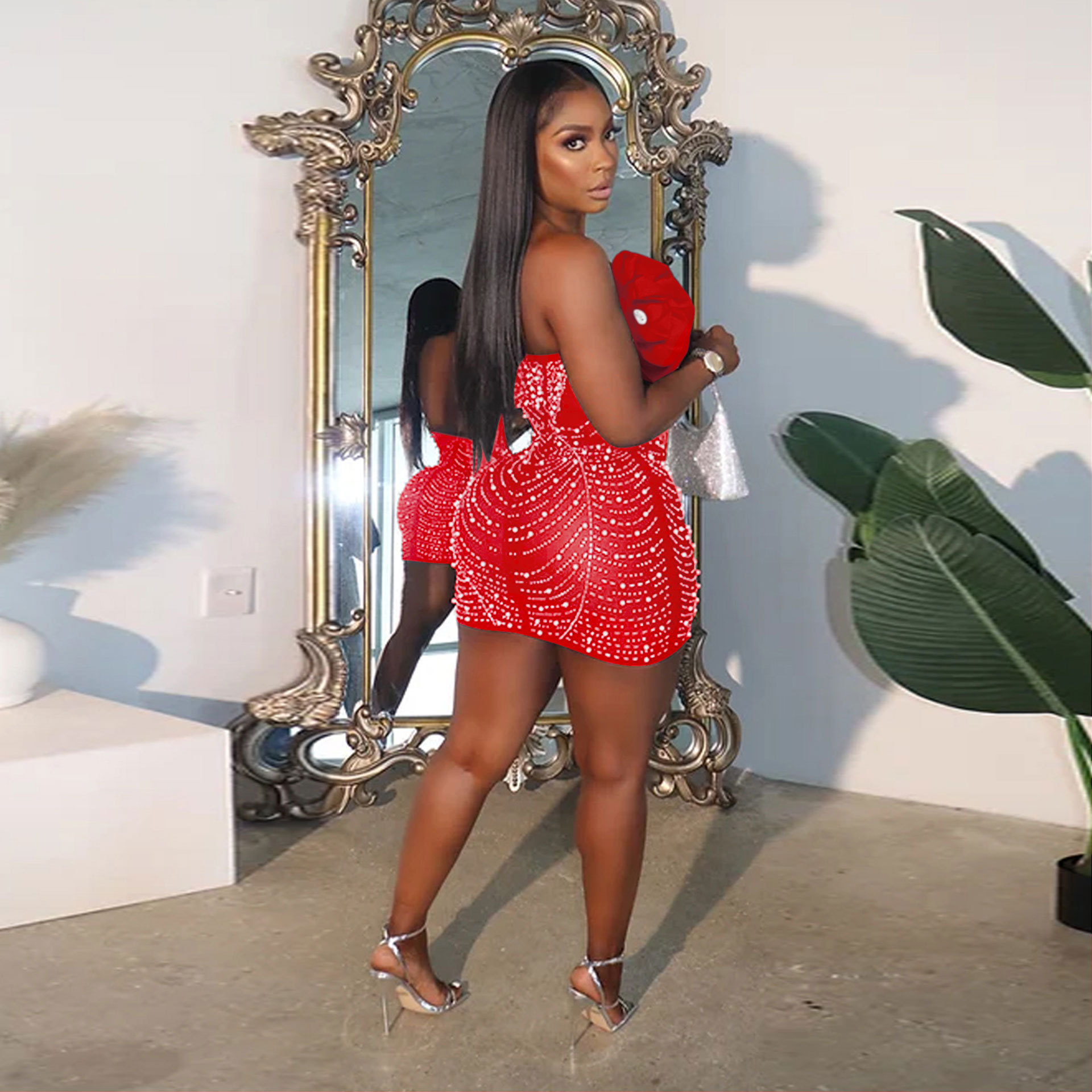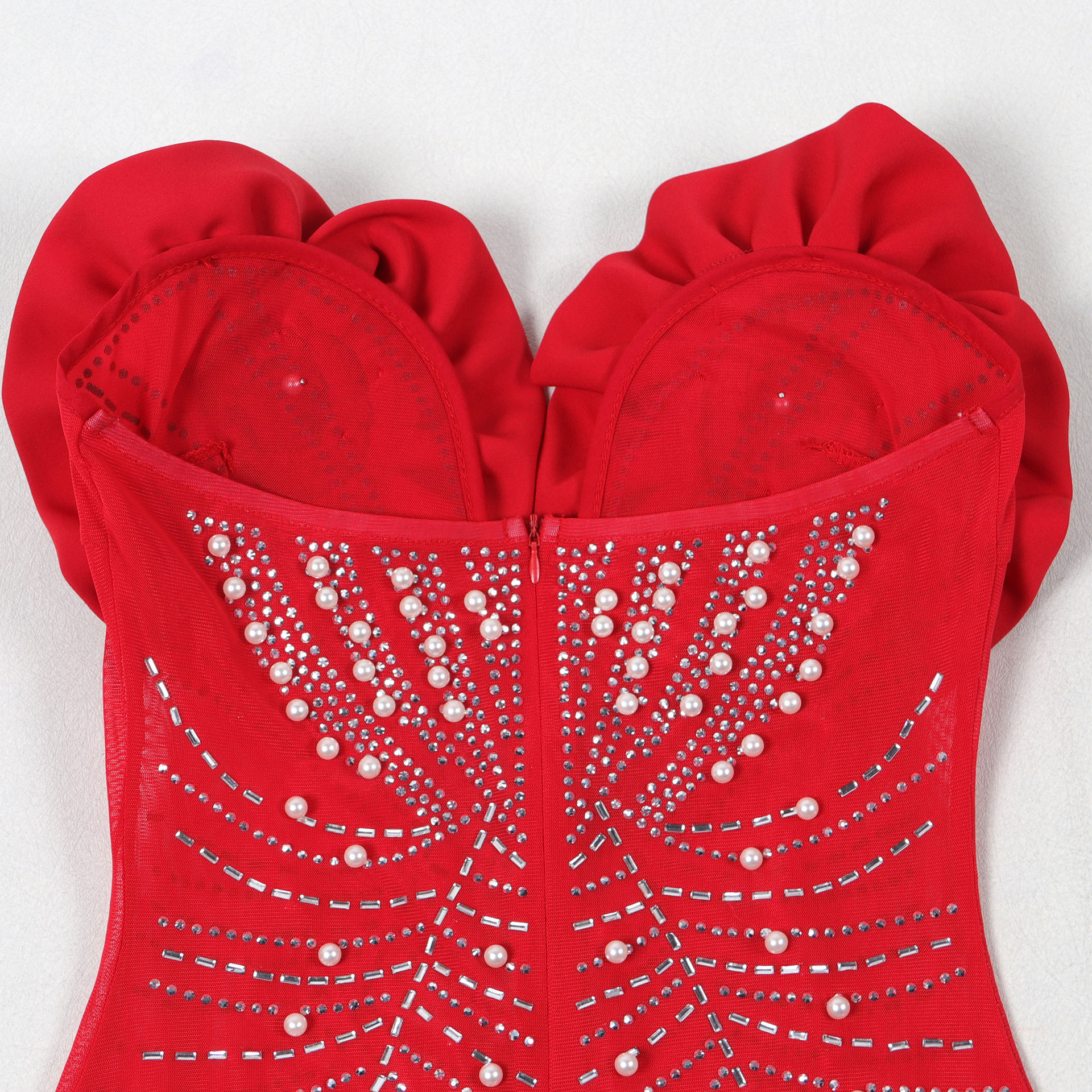 Vestido sexy ajustado con escote en V profundo y estampado floral, elástico y perlado de diamantes de imitación