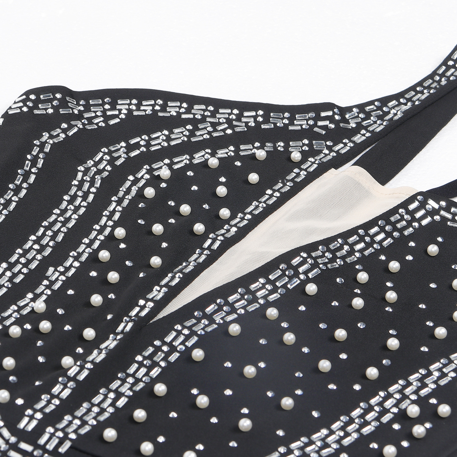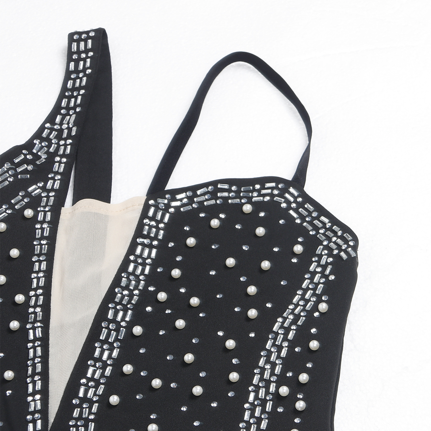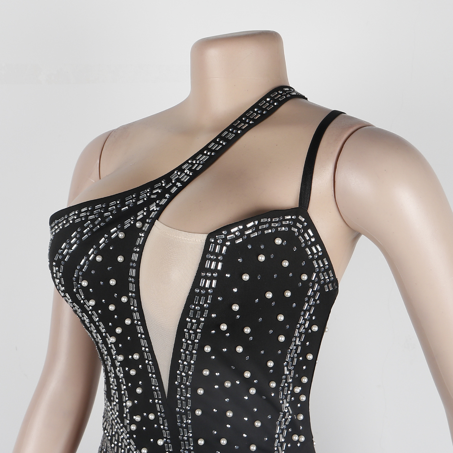 Vestido ajustado sexy con perlas y diamantes de imitación