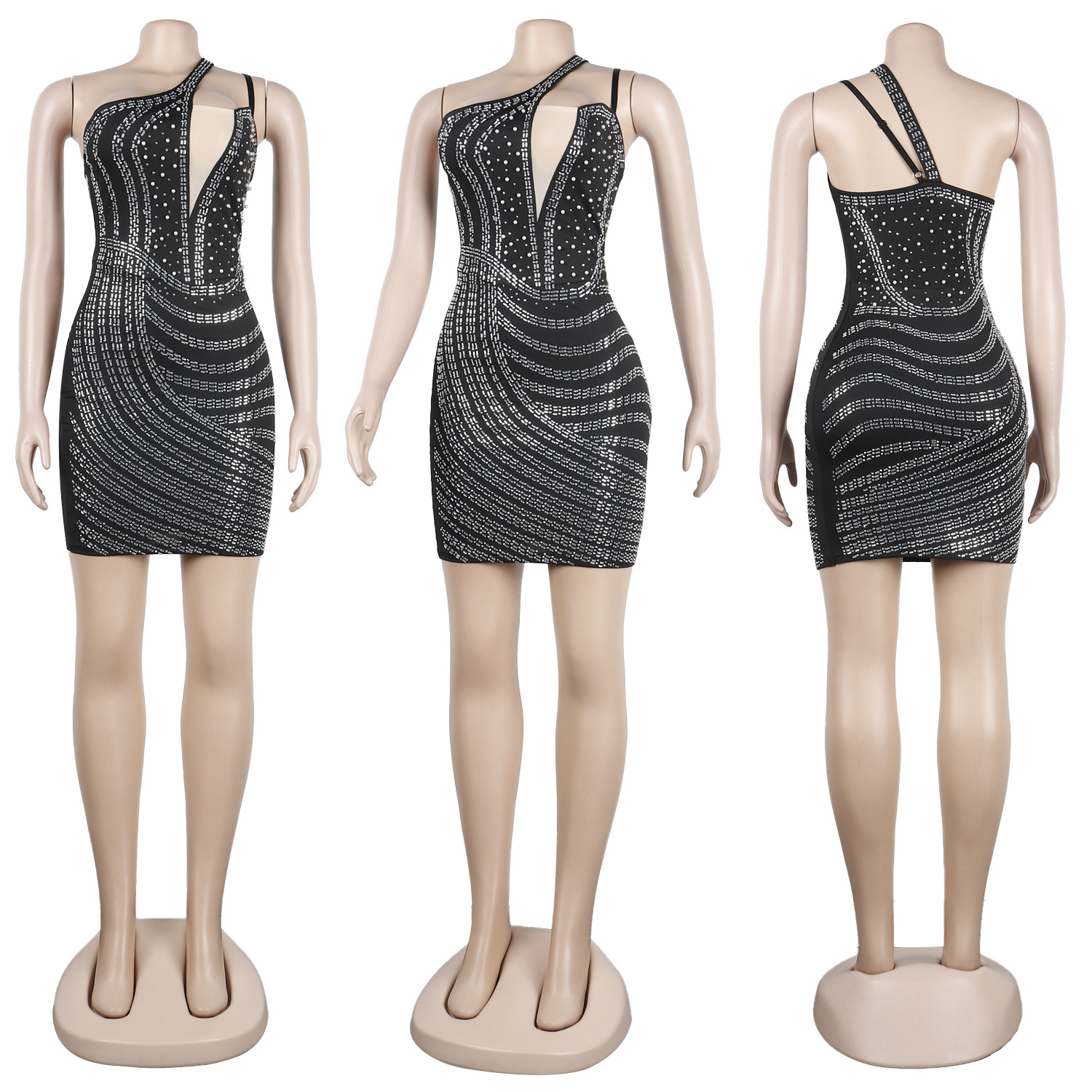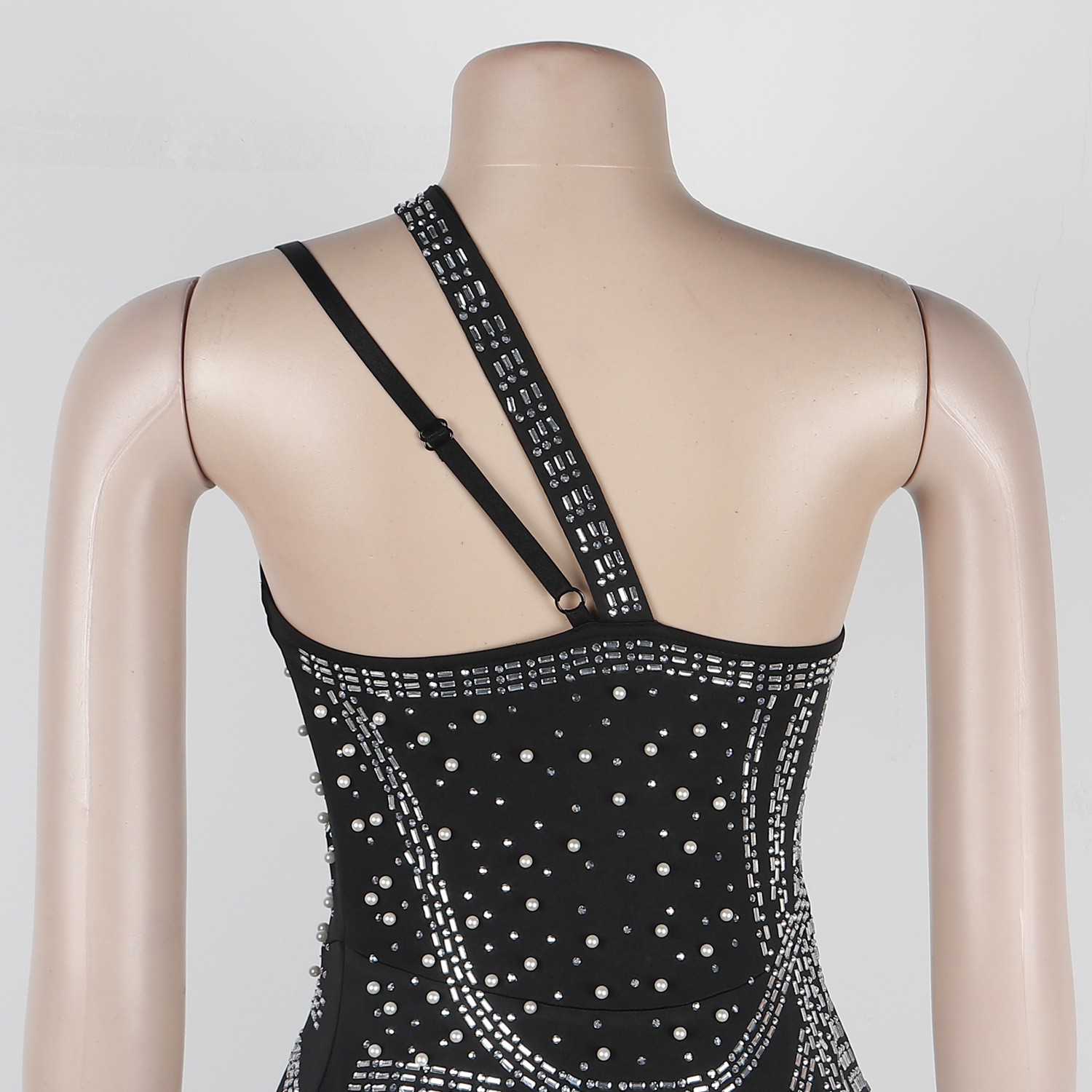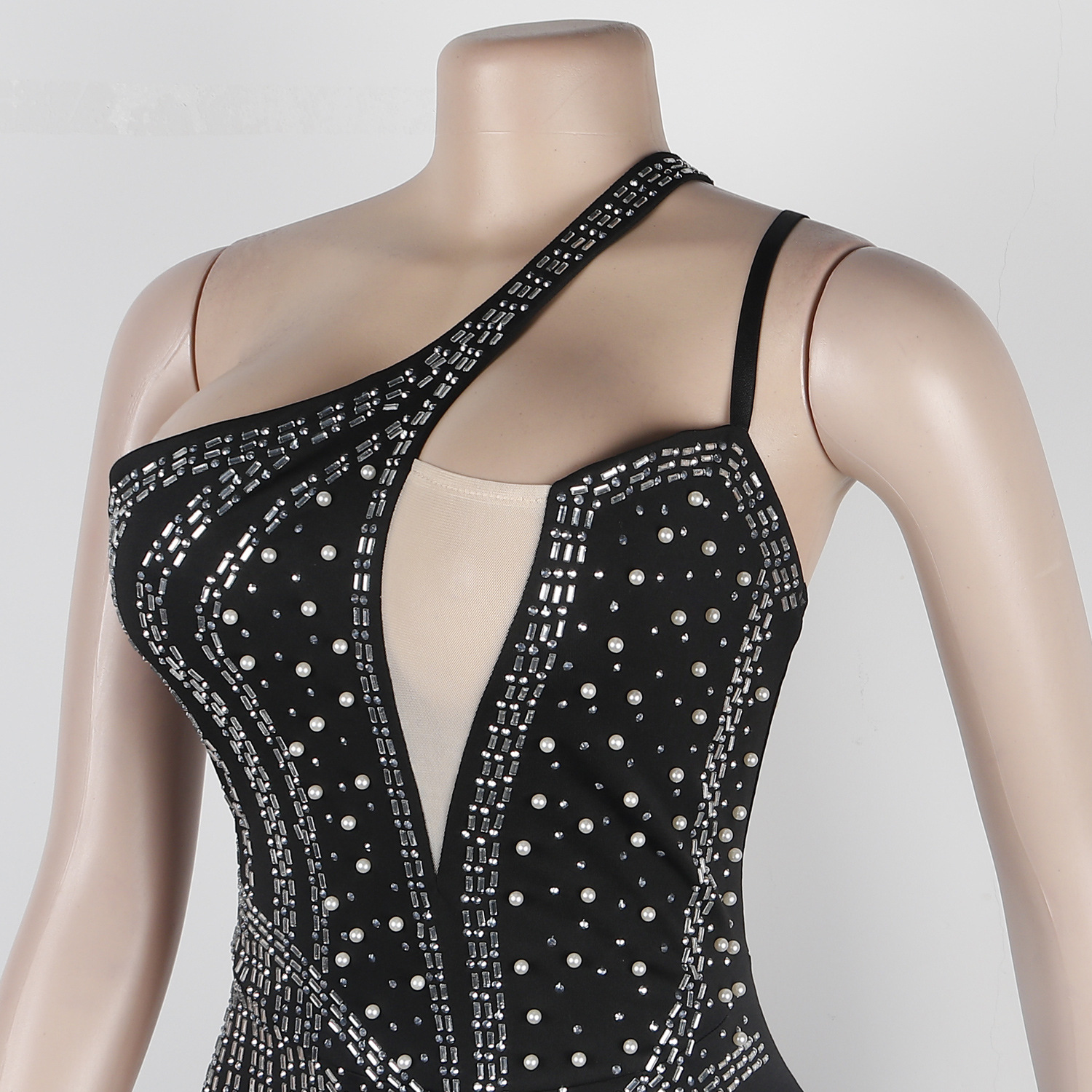 Vestido ajustado sexy con perlas y diamantes de imitación
