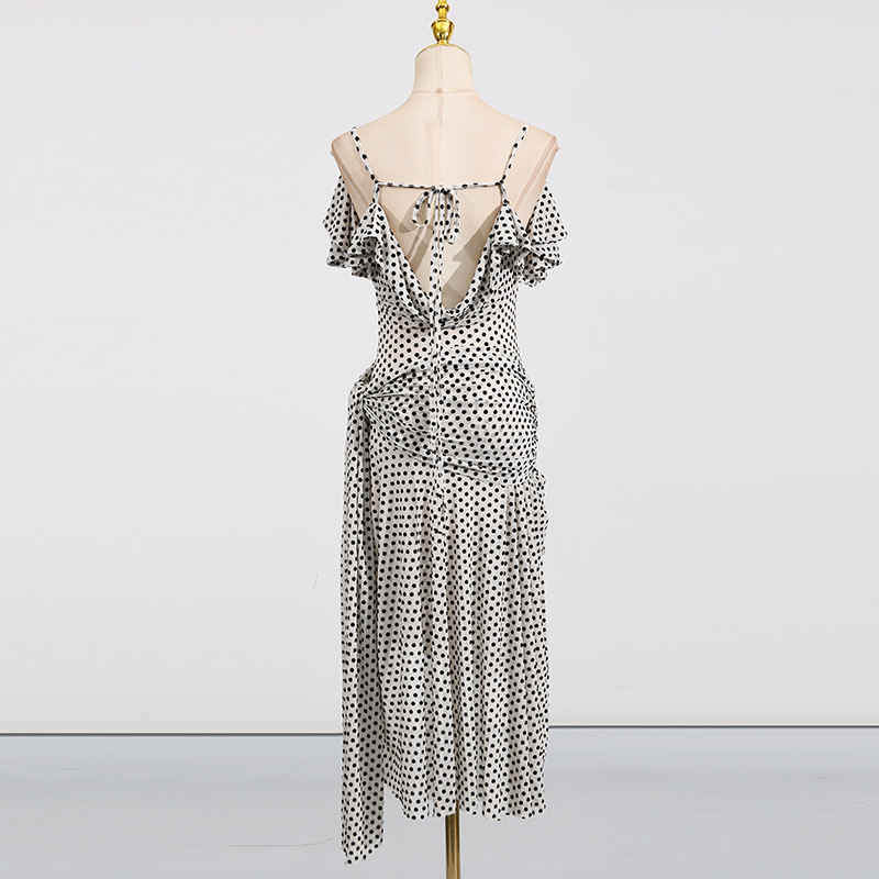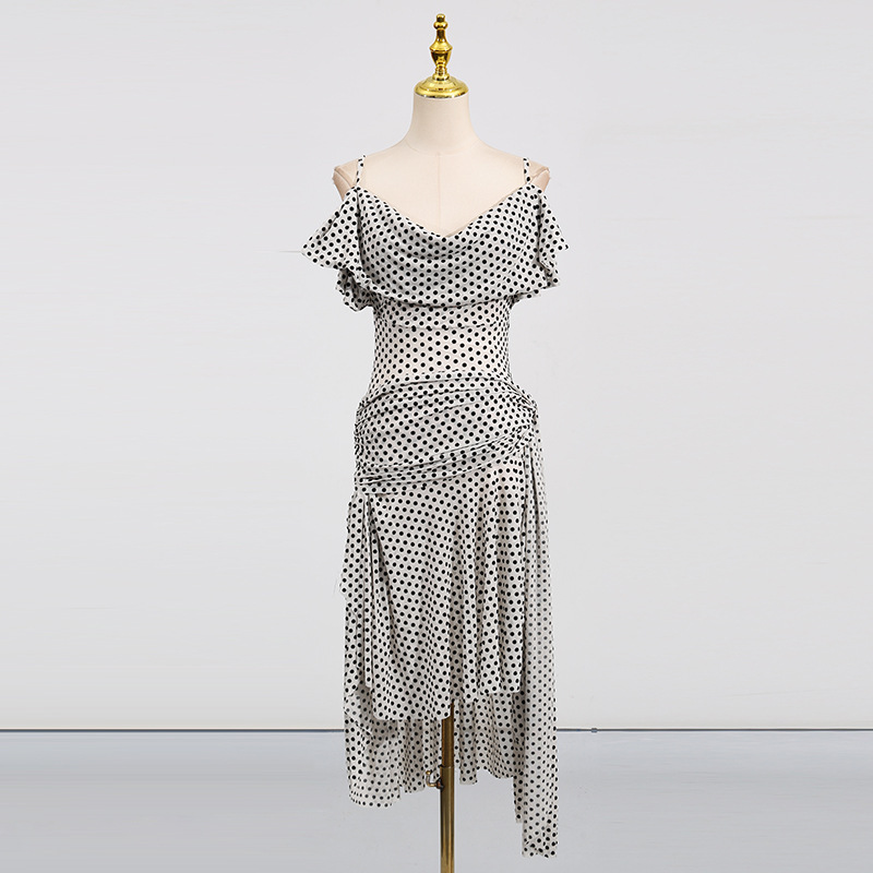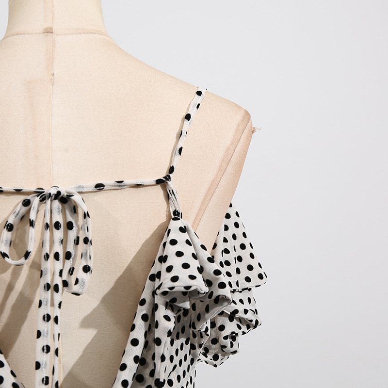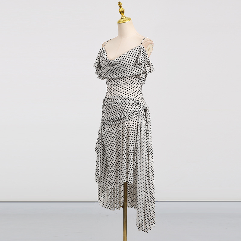 Vestido sexy de verano para mujer, con tirantes y lunares, sin mangas, con dobladillo asimétrico irregular