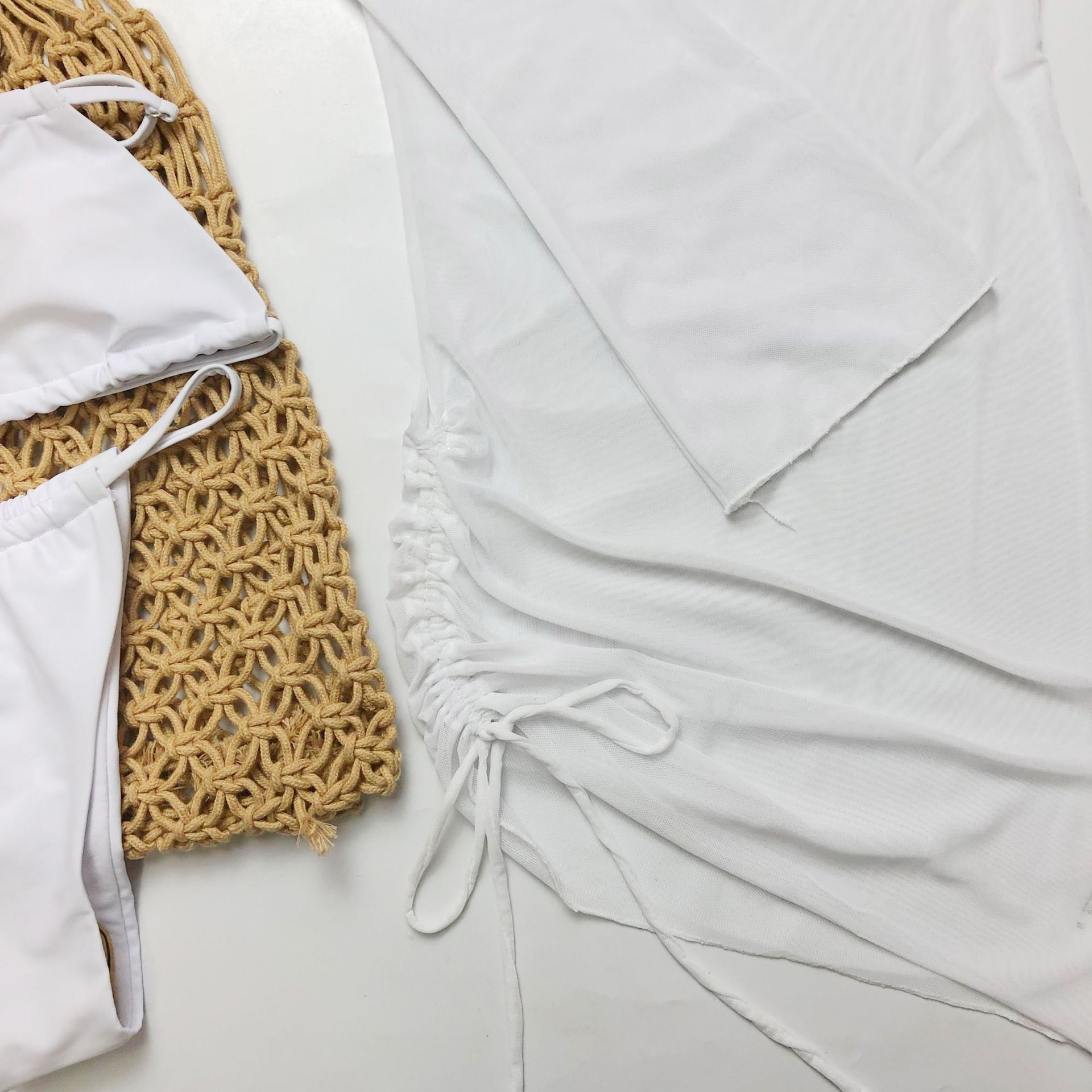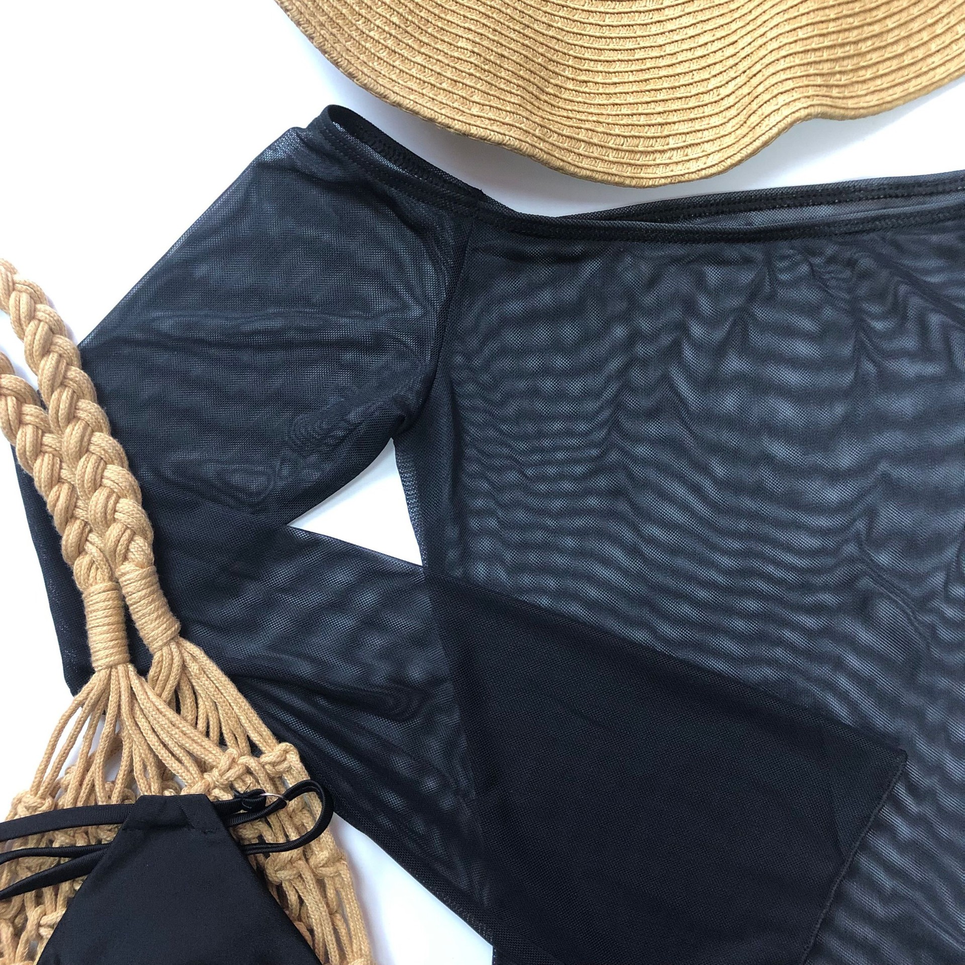 Traje de baño sexy, ropa exterior con hombros descubiertos, gasa, protección solar, ropa de playa, bikini de tres piezas