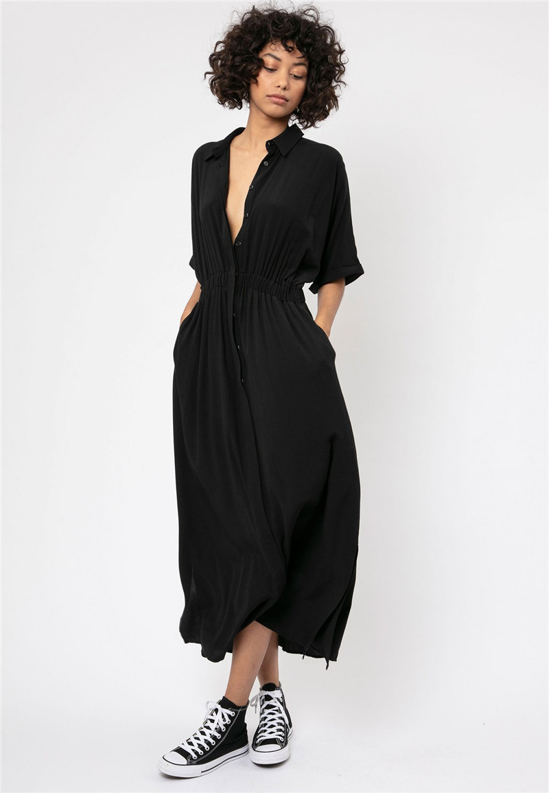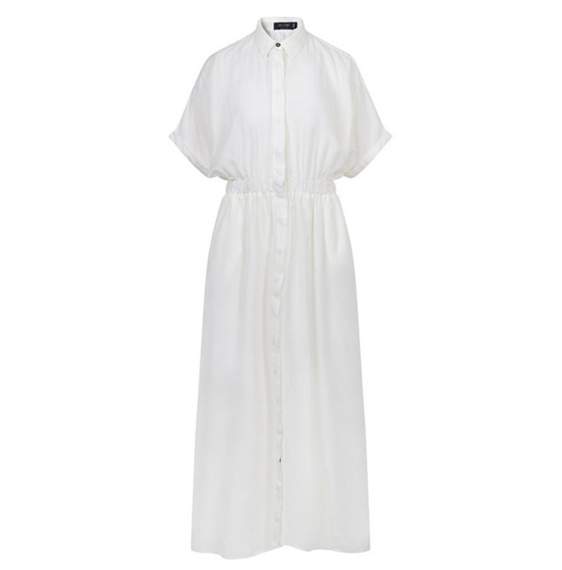Vestido playero de color liso, sexy, con escote en V profundo y una sola botonadura, con protección solar para vacaciones.