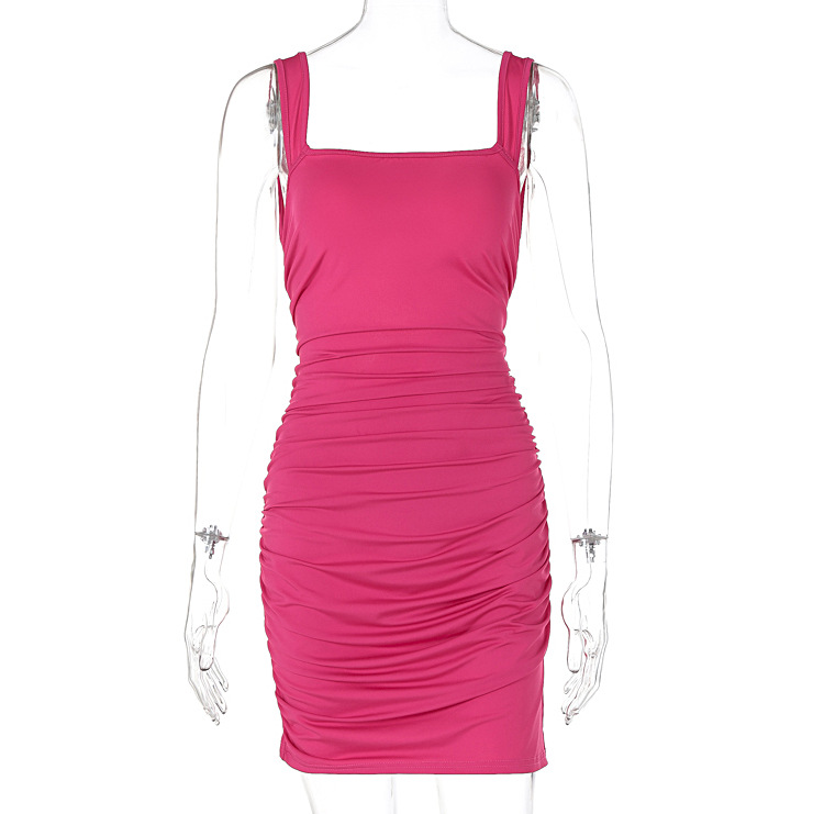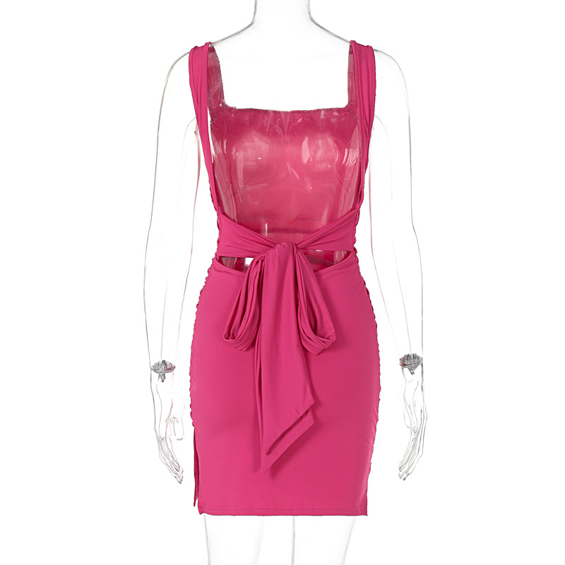 Vestido plisado ajustado sexy sin espalda con cordones de verano para mujer