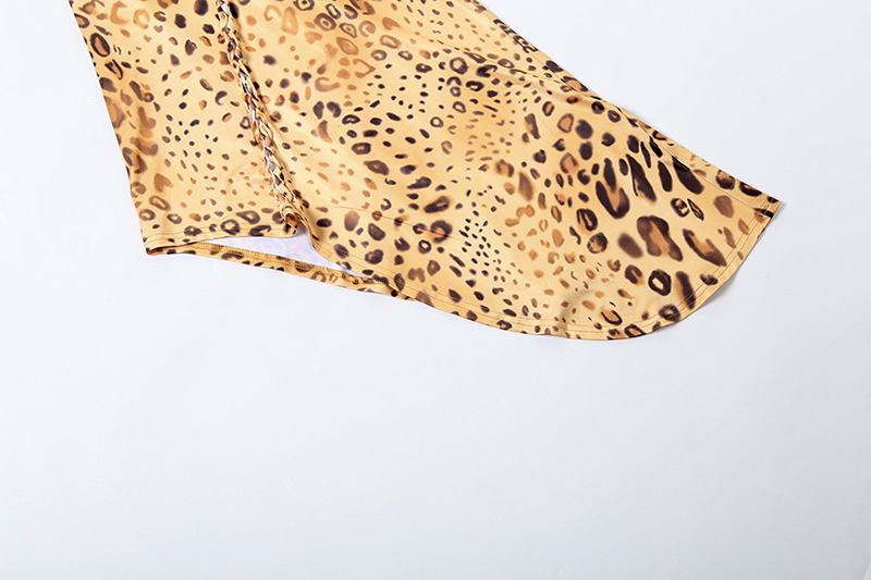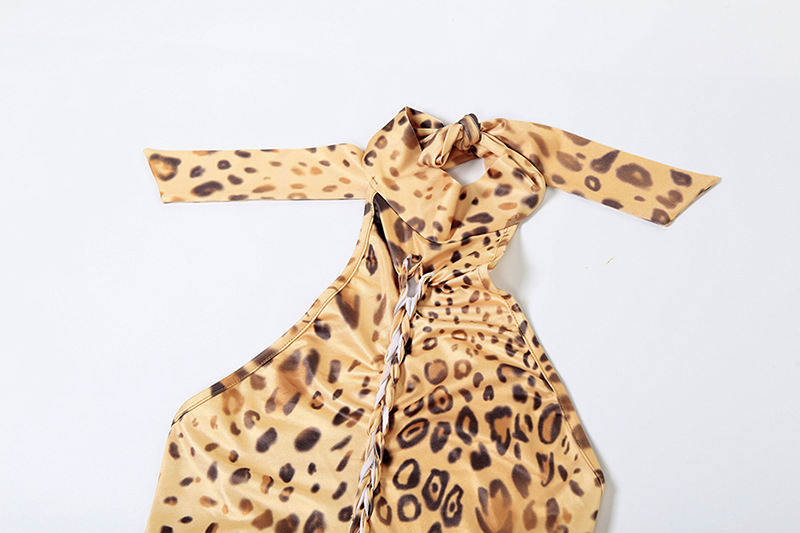 Vestido de verano sexy sin espalda, ajustado, con tirantes, estilo halter, asimétrico e irregular, con estampado de leopardo para mujer