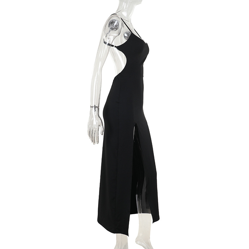 Vestido básico de verano sexy con abertura y tirantes finos para mujer