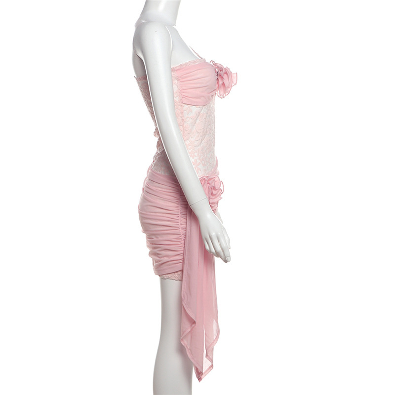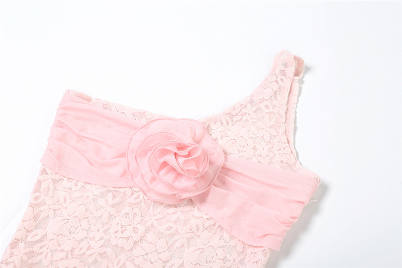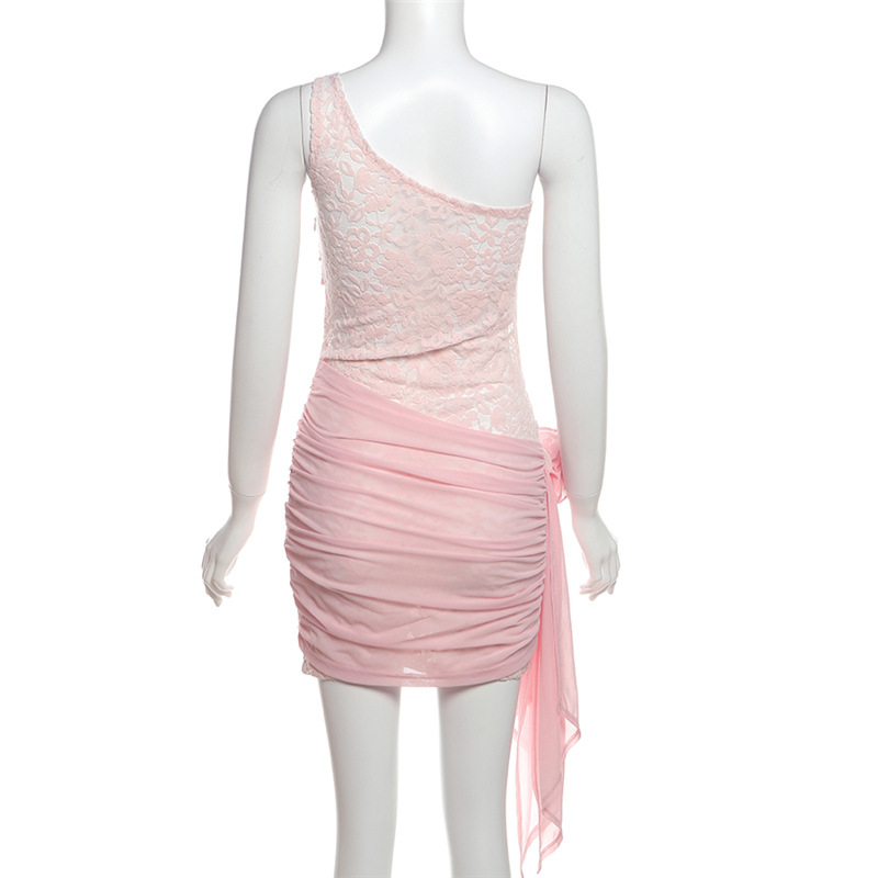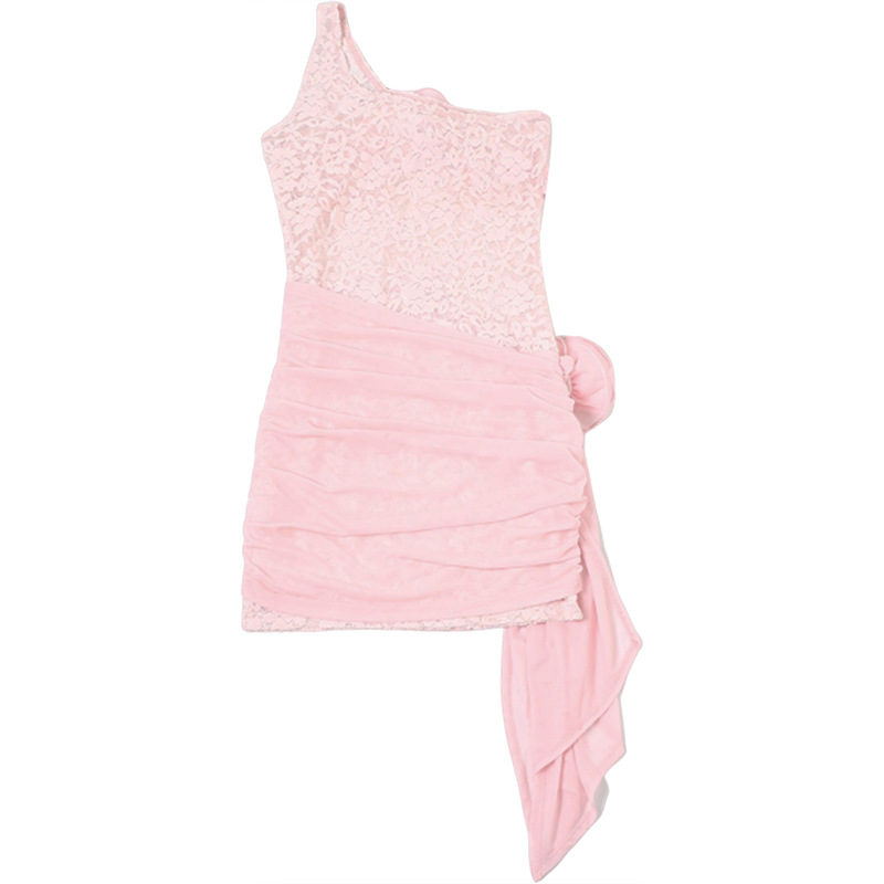 Vestido ajustado de verano con encaje floral decorativo para mujer, sexy, con un hombro descubierto y aberturas.