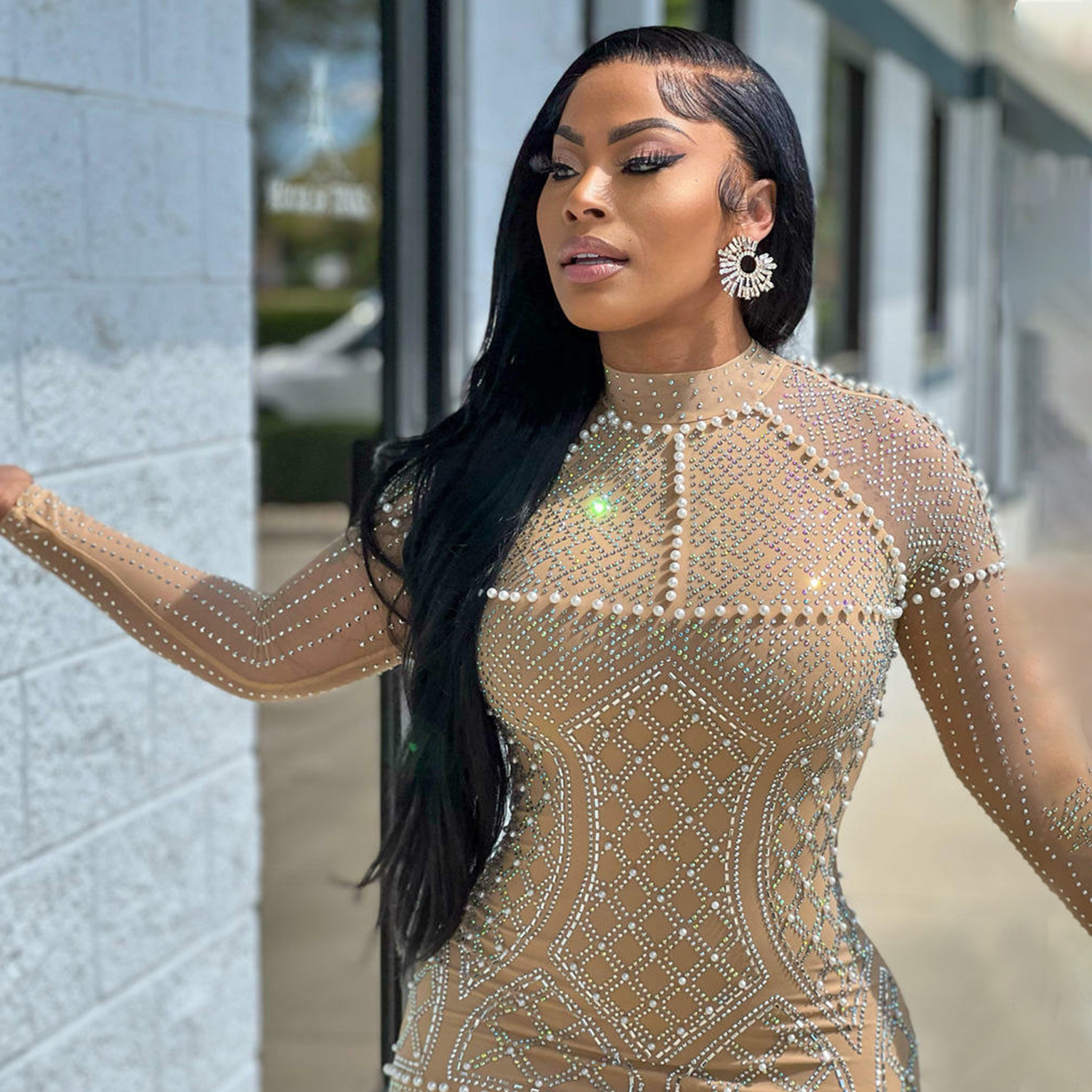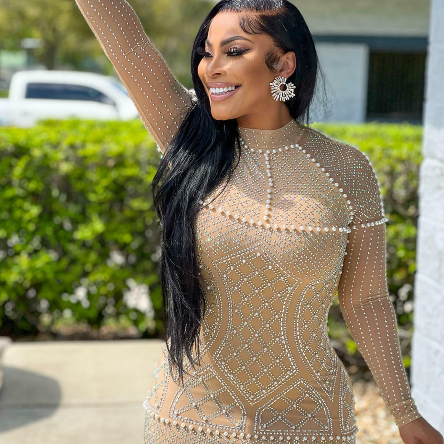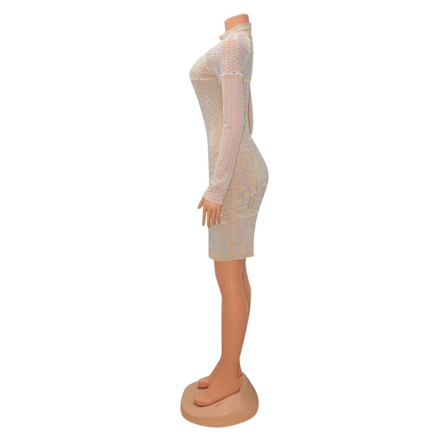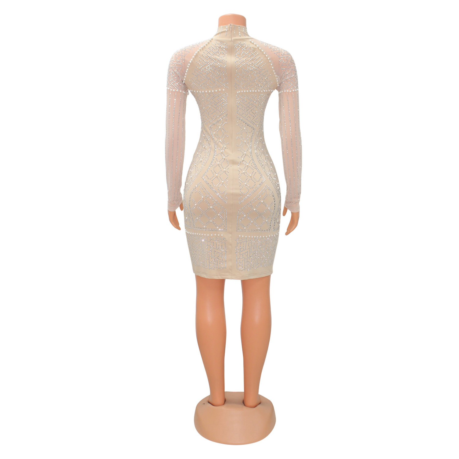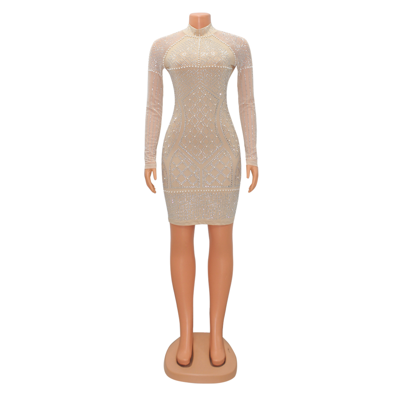 Vestido de verano para mujer, sexy, de malla, con cuentas y diamantes de imitación para discoteca