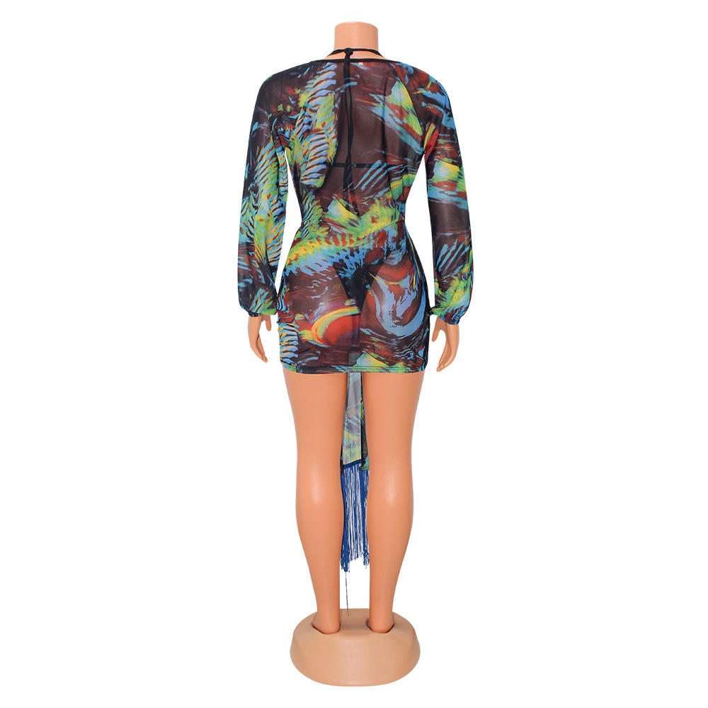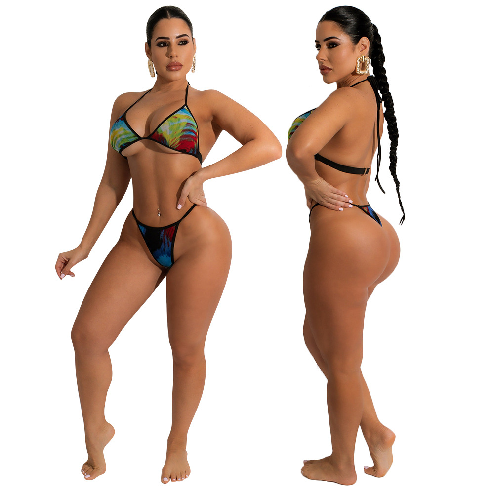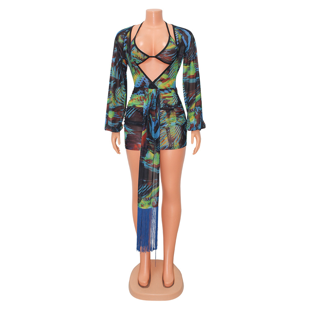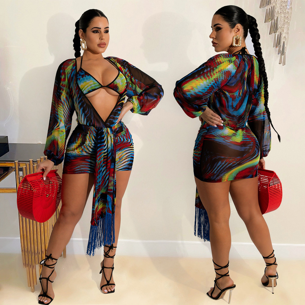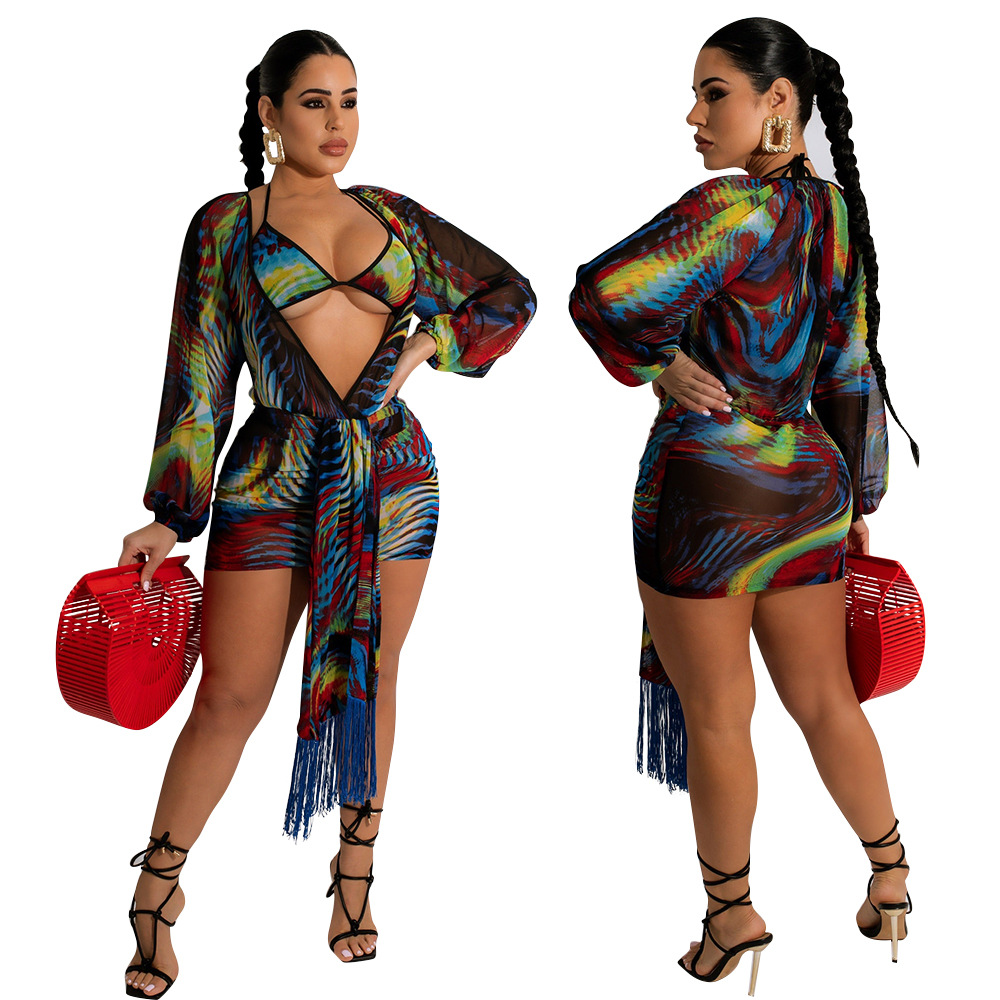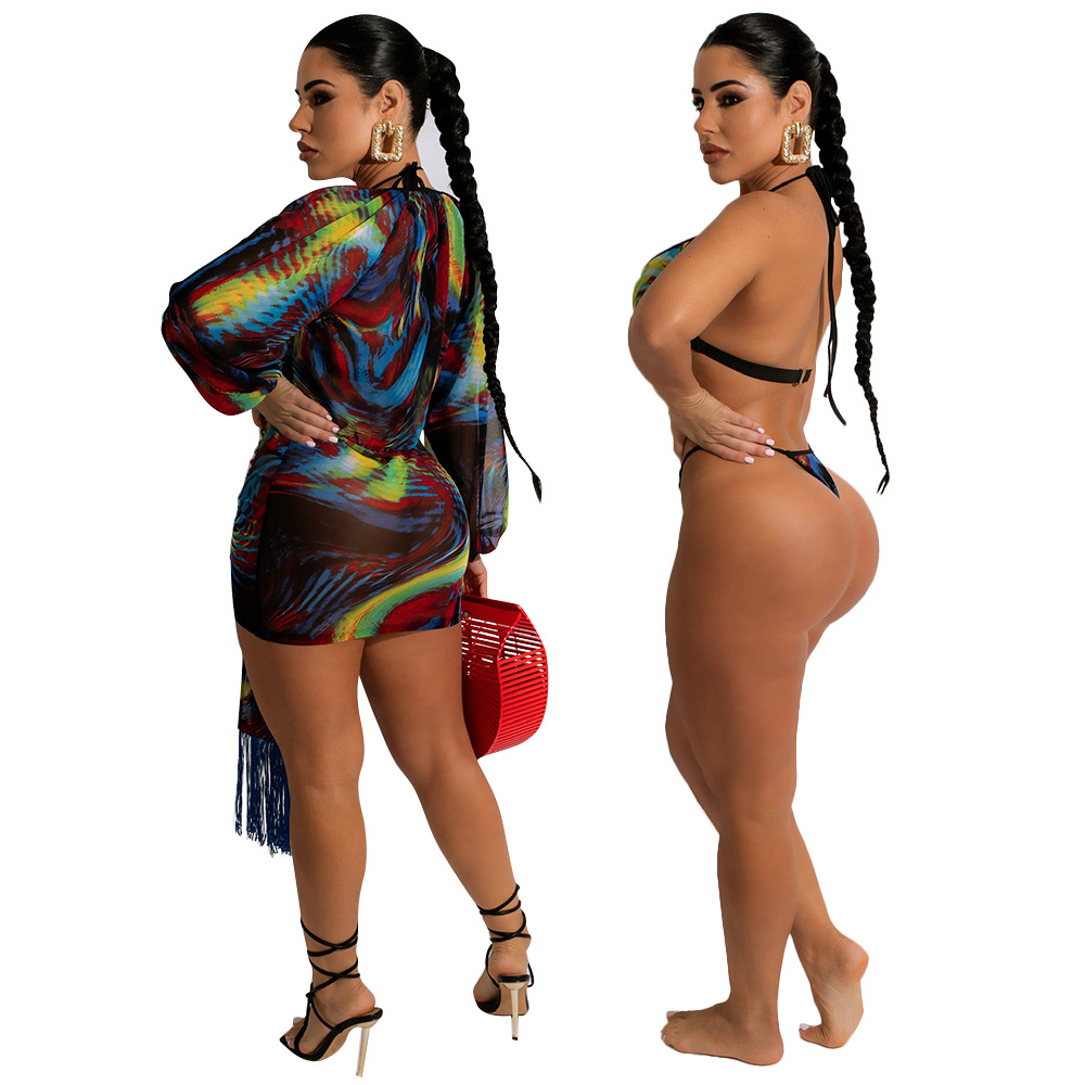 Traje de baño de verano para mujer, bikini sexy de malla transparente, traje de baño de tres piezas