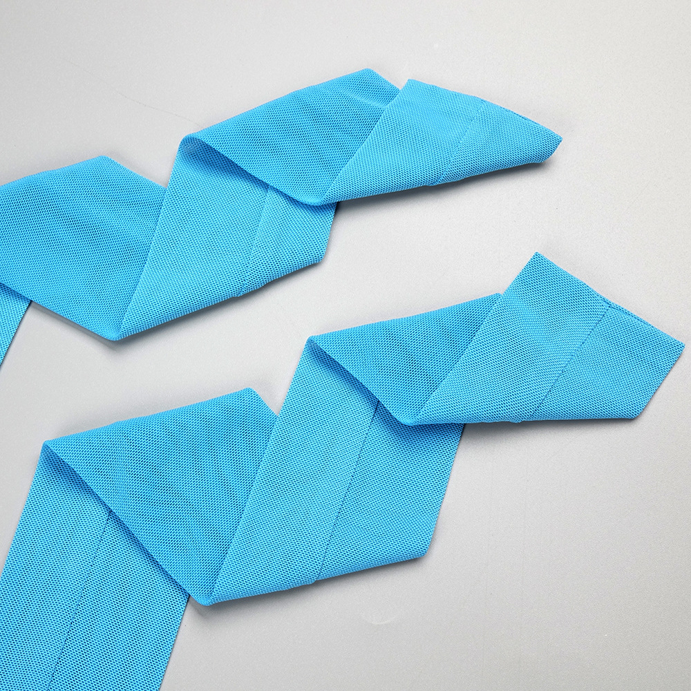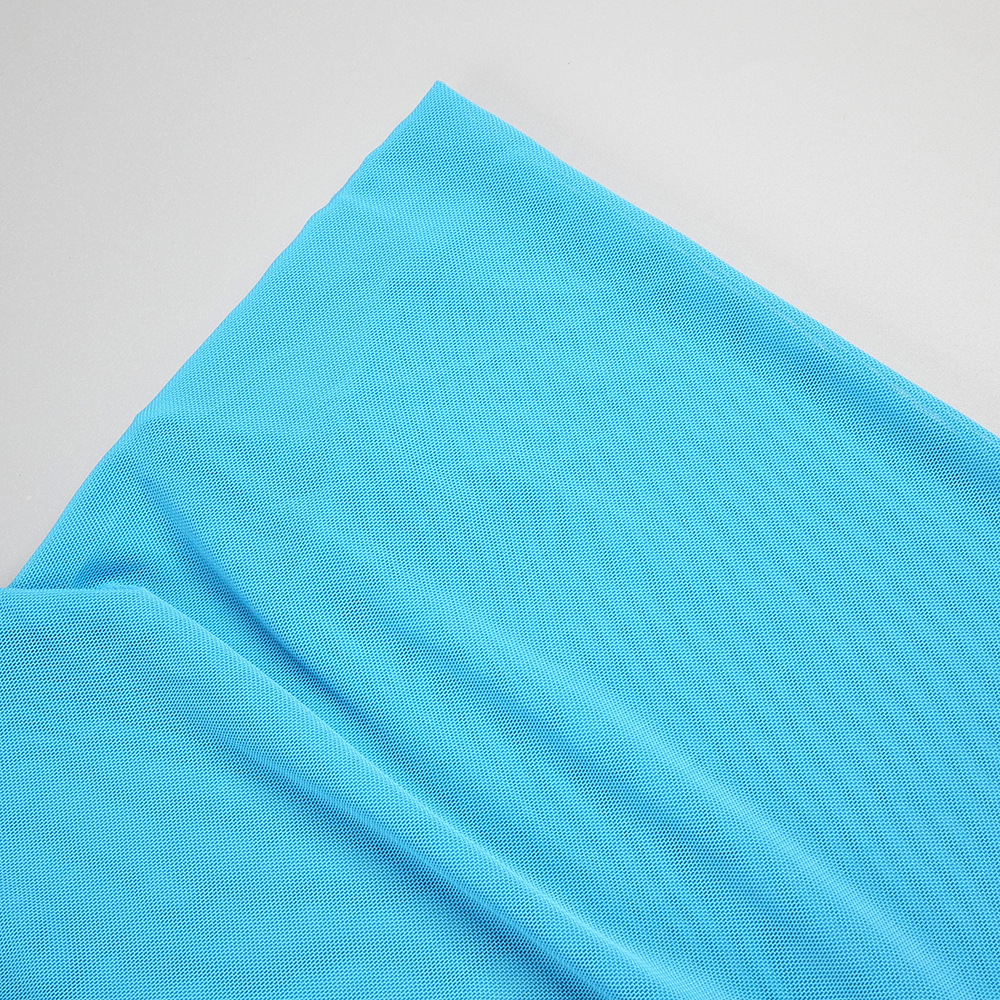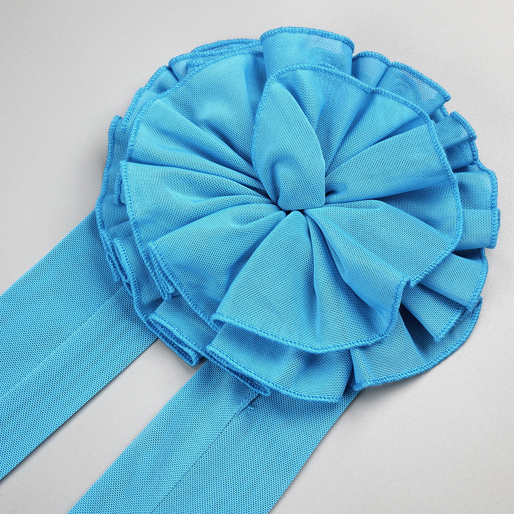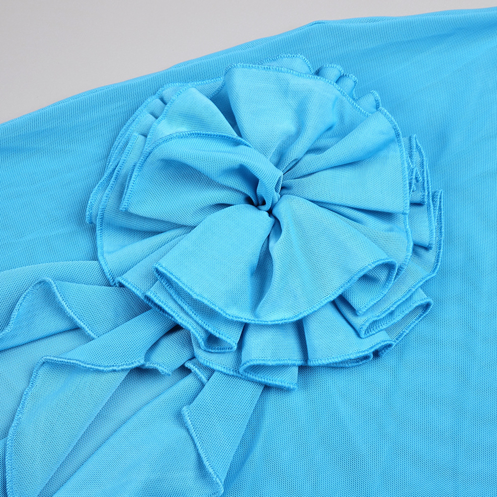 Vestido de verano para mujer, de gasa azul, sin tirantes, con cinta floral y hilo de red blanco