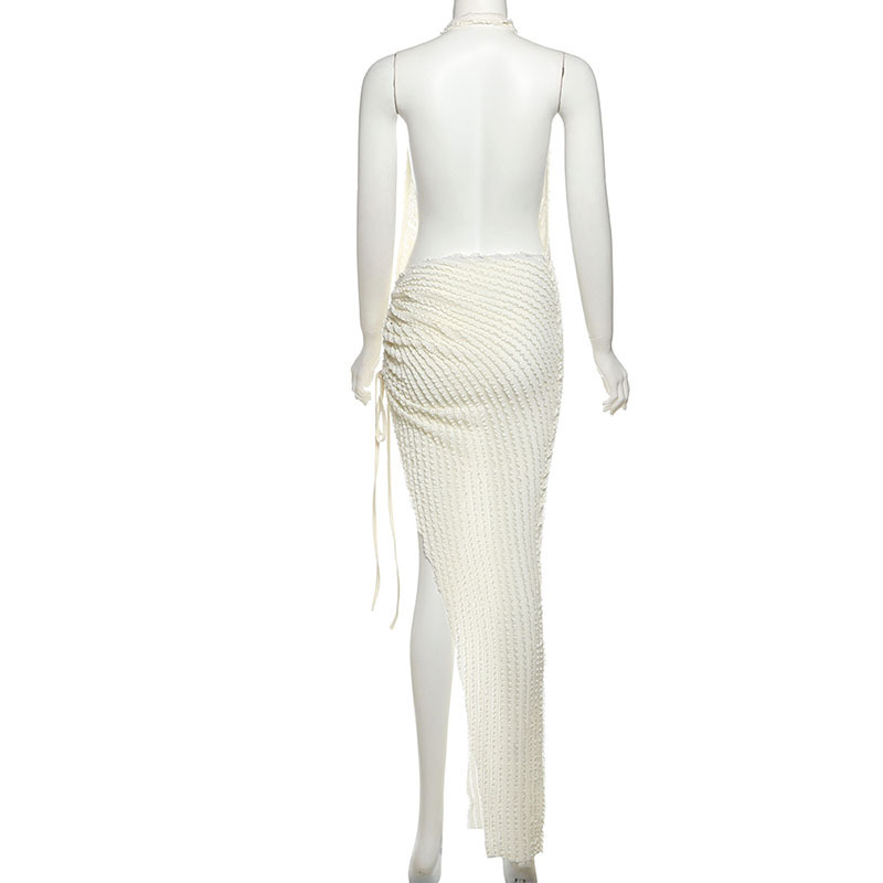 Vestido de verano para mujer, sexy, con cuello halter, espalda descubierta y abertura en la cintura.