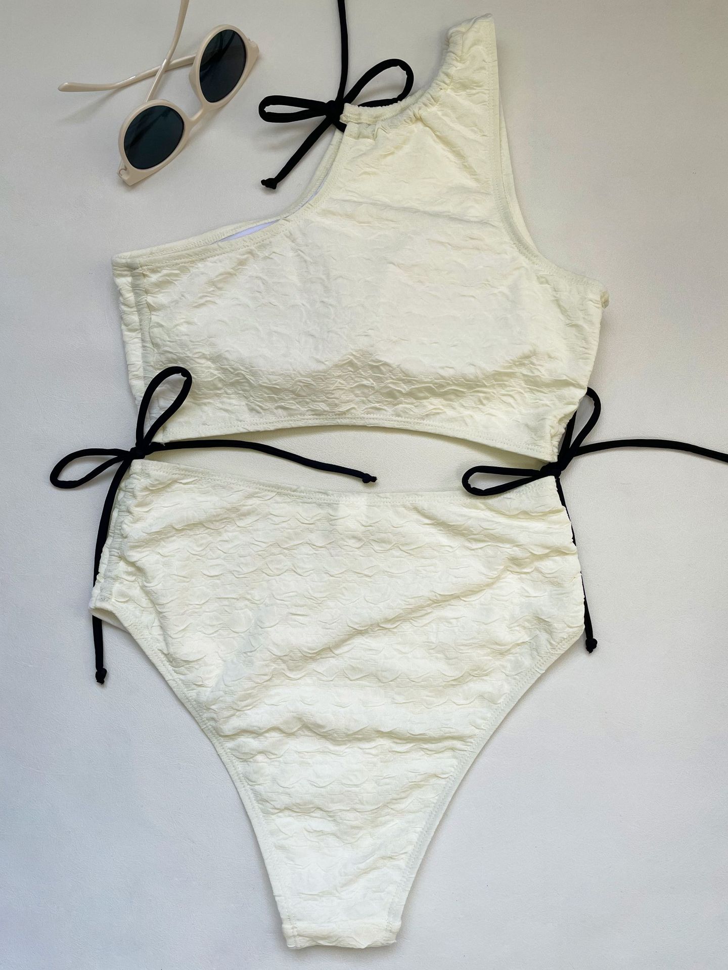 Traje de baño para mujer, color sólido, sexy, ajustado, con cordones, traje de baño corto, traje de baño de una pieza duradero y texturizado