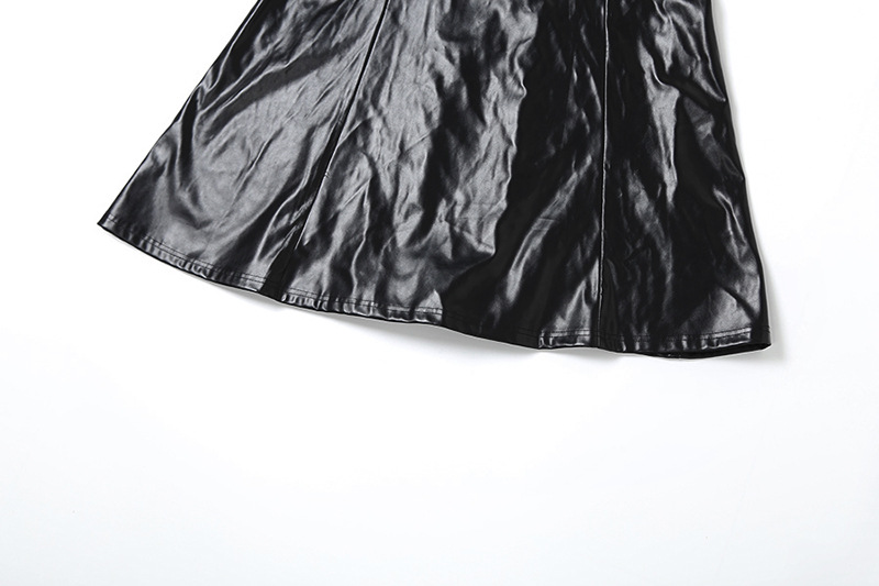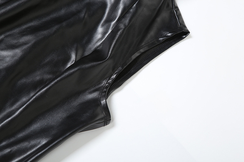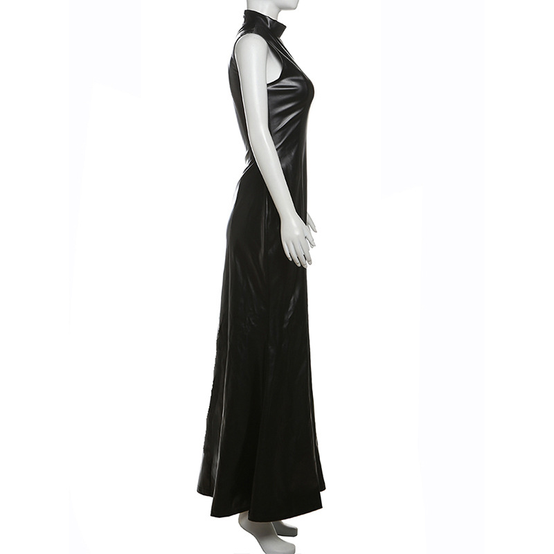 Vestido de piel sintética de color liso sin mangas ajustado con cuello alto y personalidad para otoño e invierno para mujer