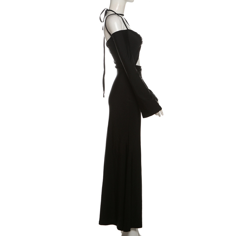 Vestido de mujer Otoño Invierno Sexy con aberturas y escote en V sin espalda con cordones y cuello halter de color liso