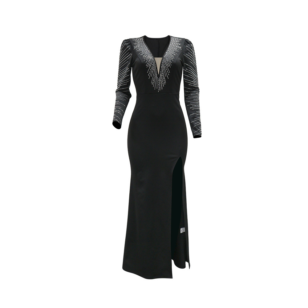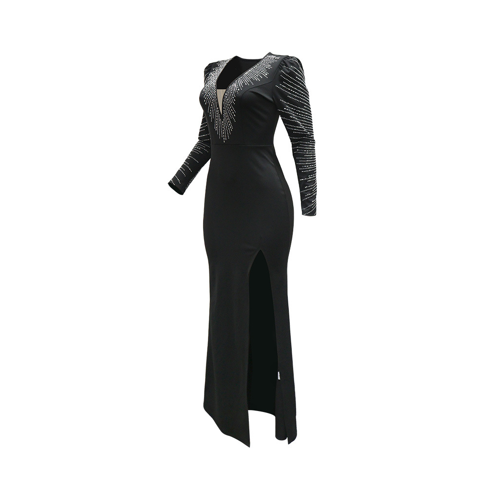 Women Clothing Deep V Plunge High Slit Evening Dress