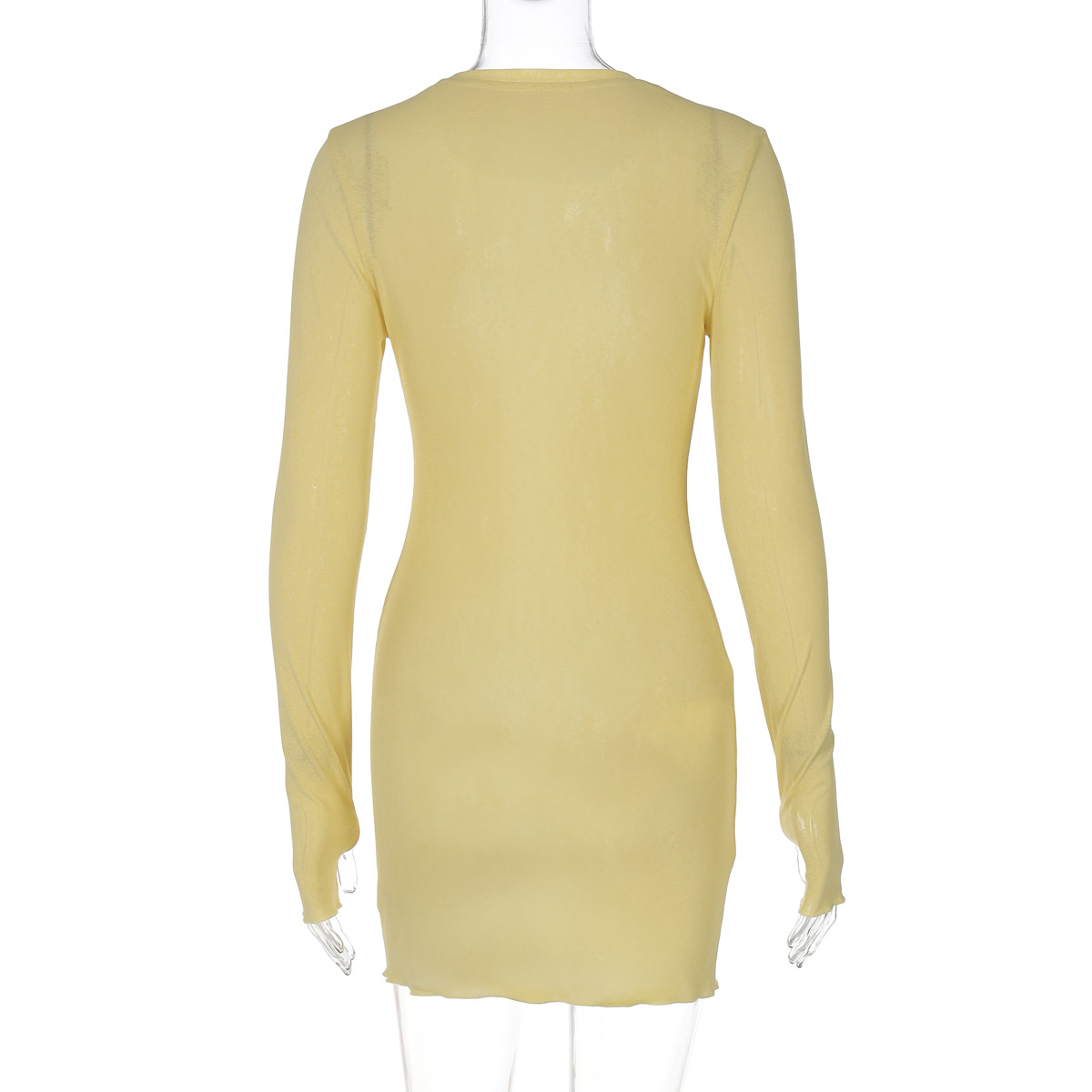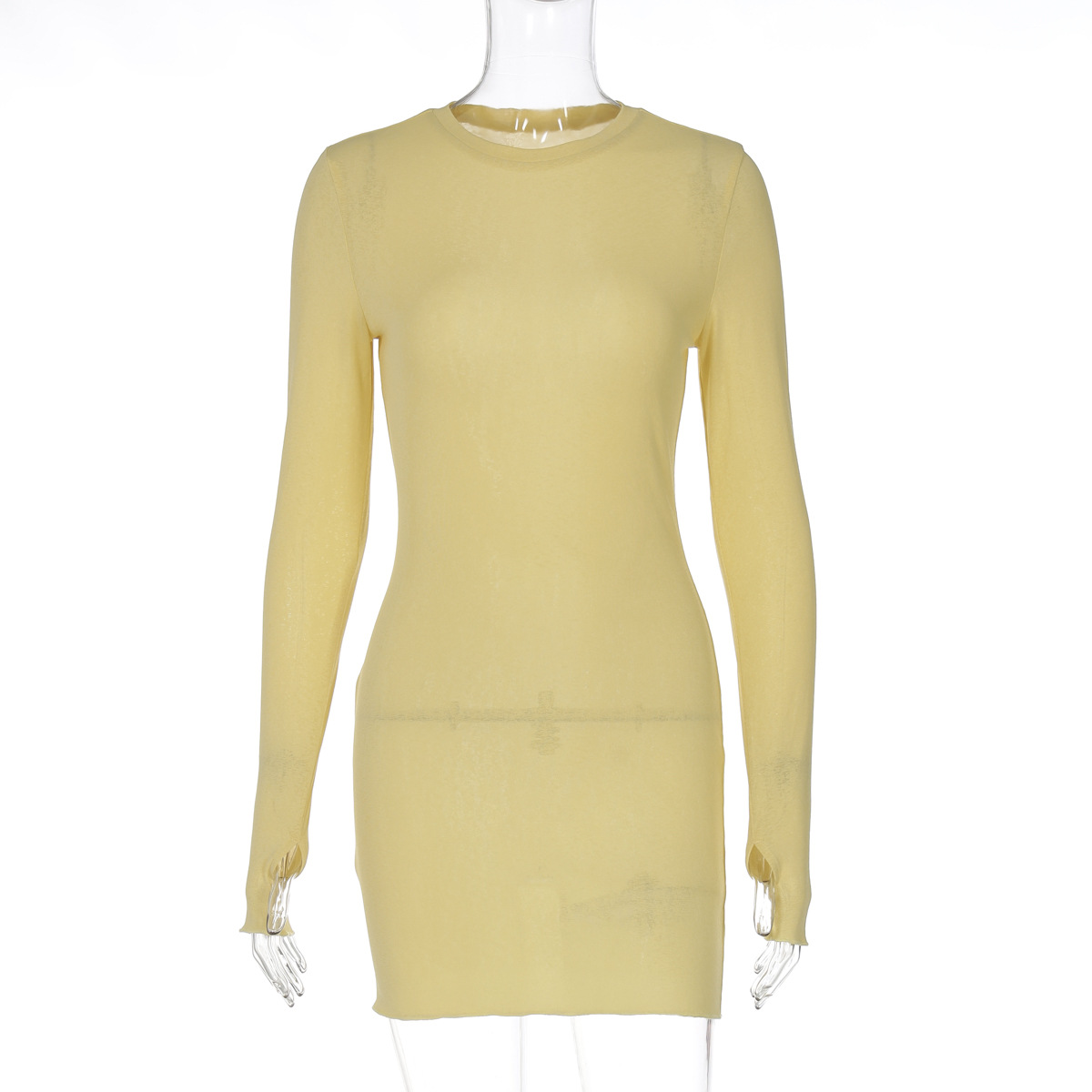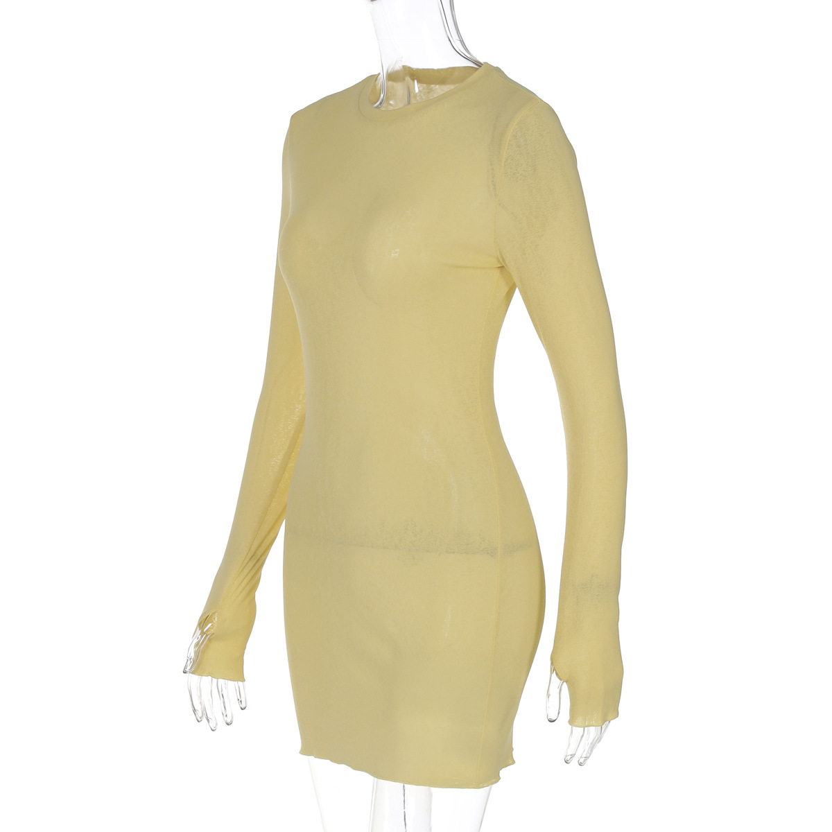 Vestido ajustado de manga larga con cuello redondo y microtransparente, elegante y sexy, para mujer