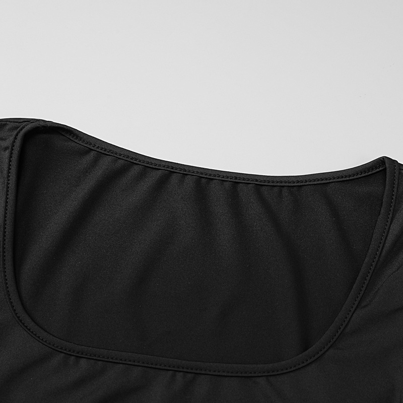 Vestido ajustado de manga larga con cuello en U y orillo de fibra para mujer, color liso, primavera