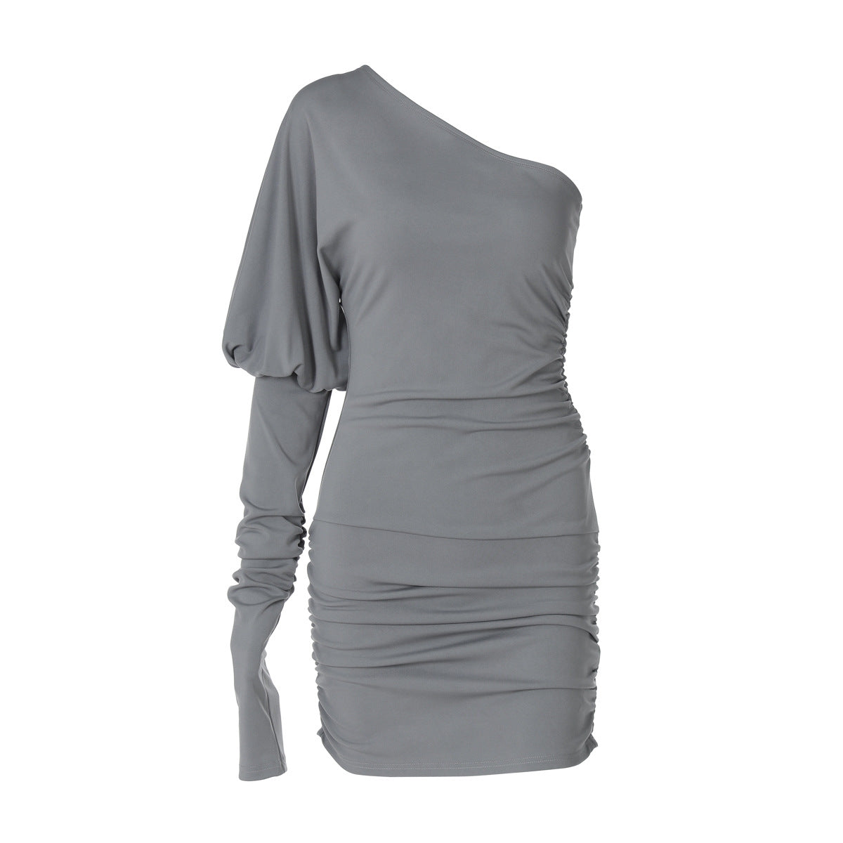 Ropa de mujer de invierno con personalidad, corte entallado, cuello diagonal, bolso de hombro, vestido a la cadera