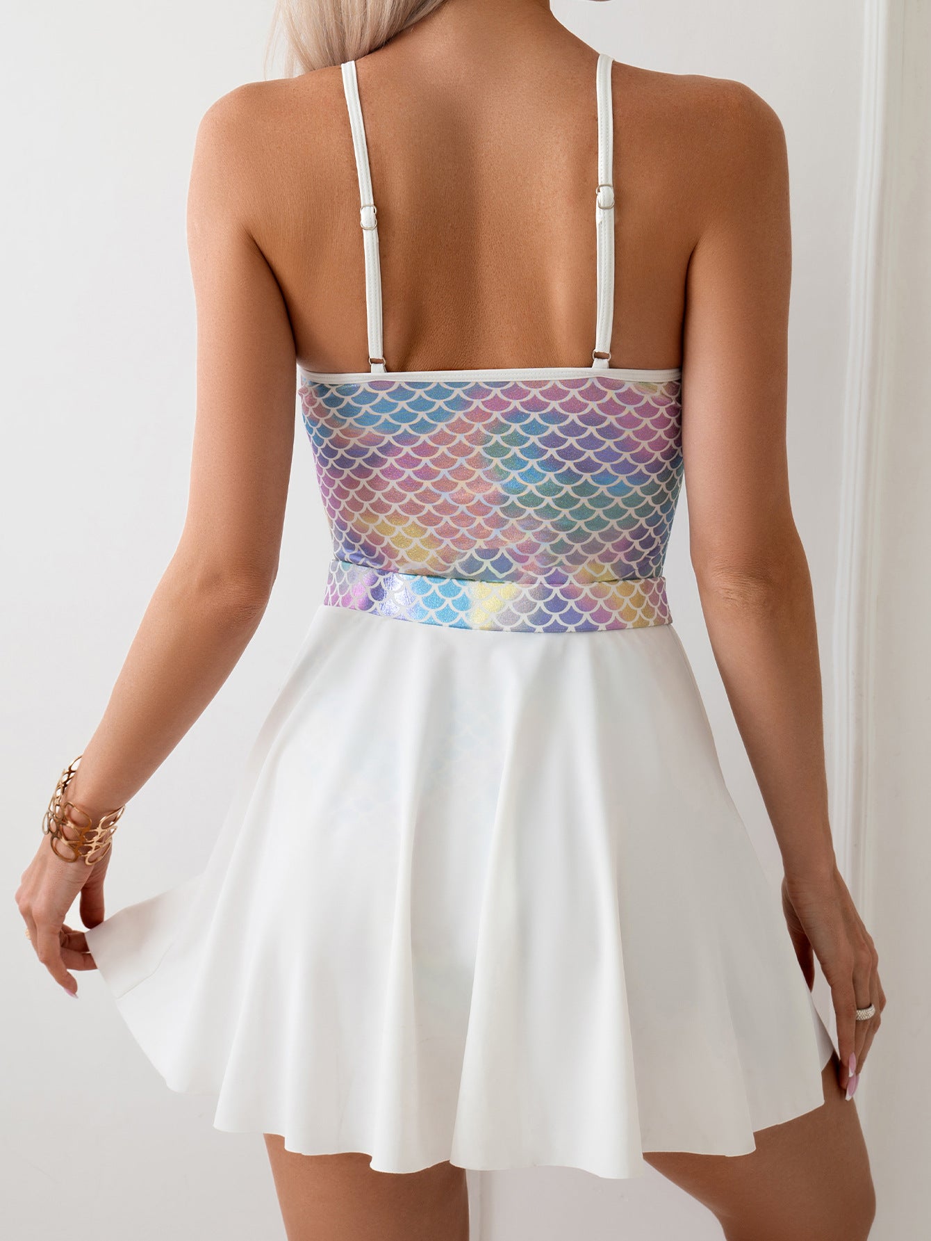 Traje de baño deportivo competitivo para mujer, falda a escala, traje de baño de una pieza