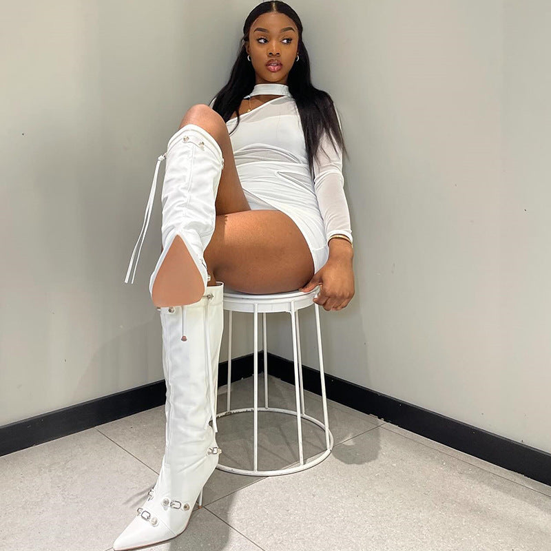 Vestido sexy de color liso para mujer, con aberturas y cortes, con costuras de malla y cadera.