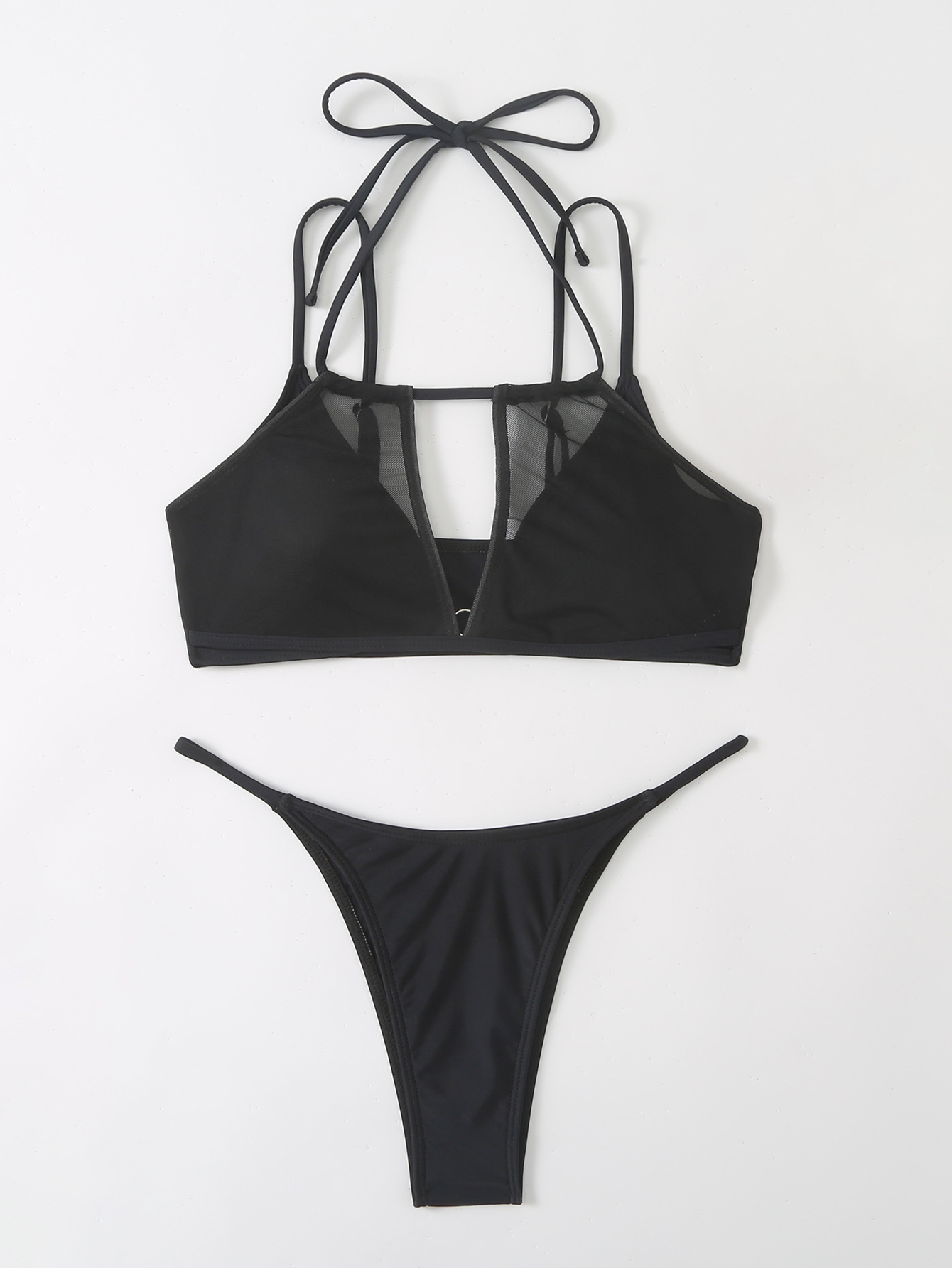 Traje de baño de mujer de color sólido dividido bikini sexy con encaje y lazo recortado