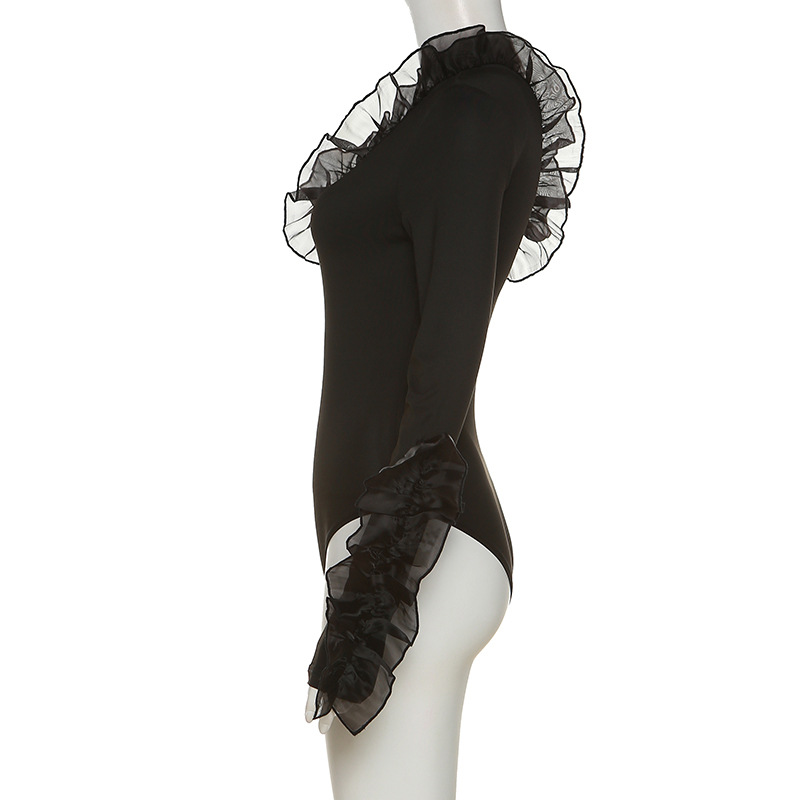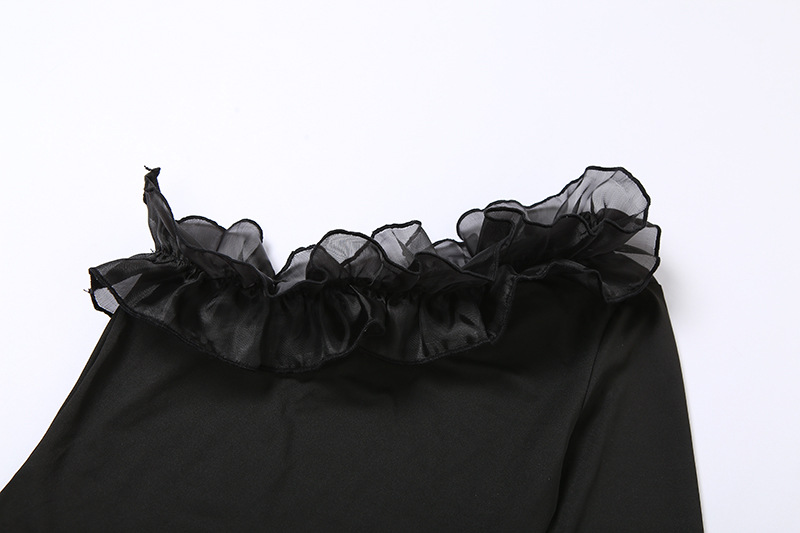 T-shirt moulant en maille pour femme, vêtement d'automne et d'hiver, manches volantées, gaine fine