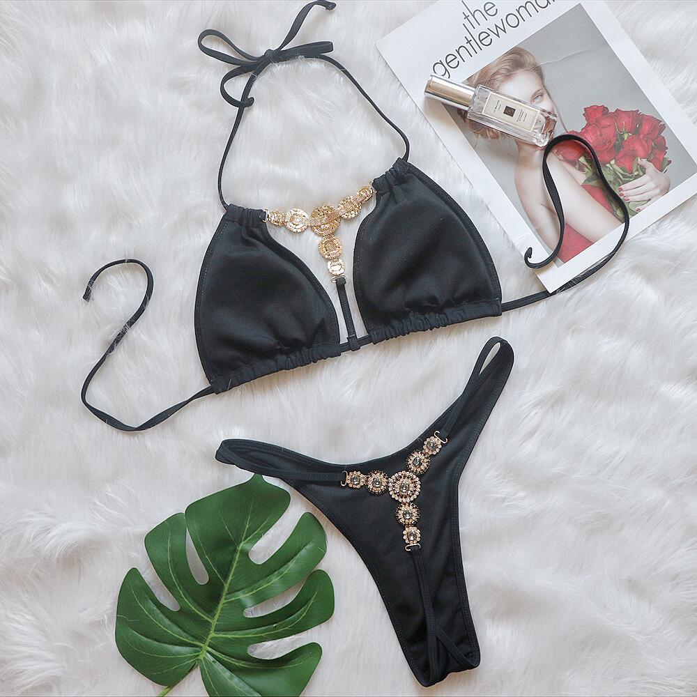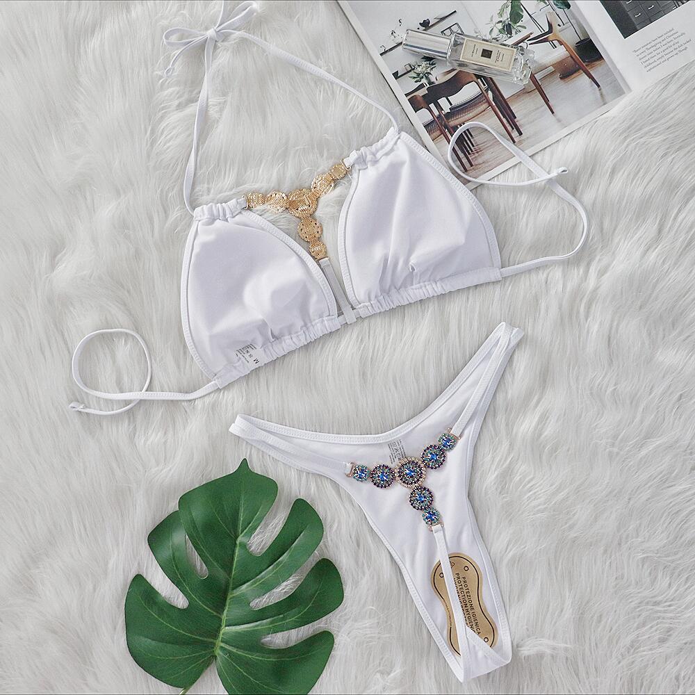 Maillot de bain femme Bikini Crystal Diamond Split Maillot de bain uni noué