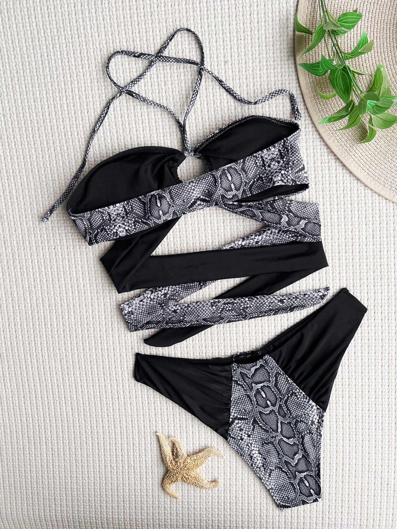 Bikini Double Bikini Imprimé Serpent Maillot de Bain Sexy Natation Couleur Assortie Maillot de Bain Couture Bikini
