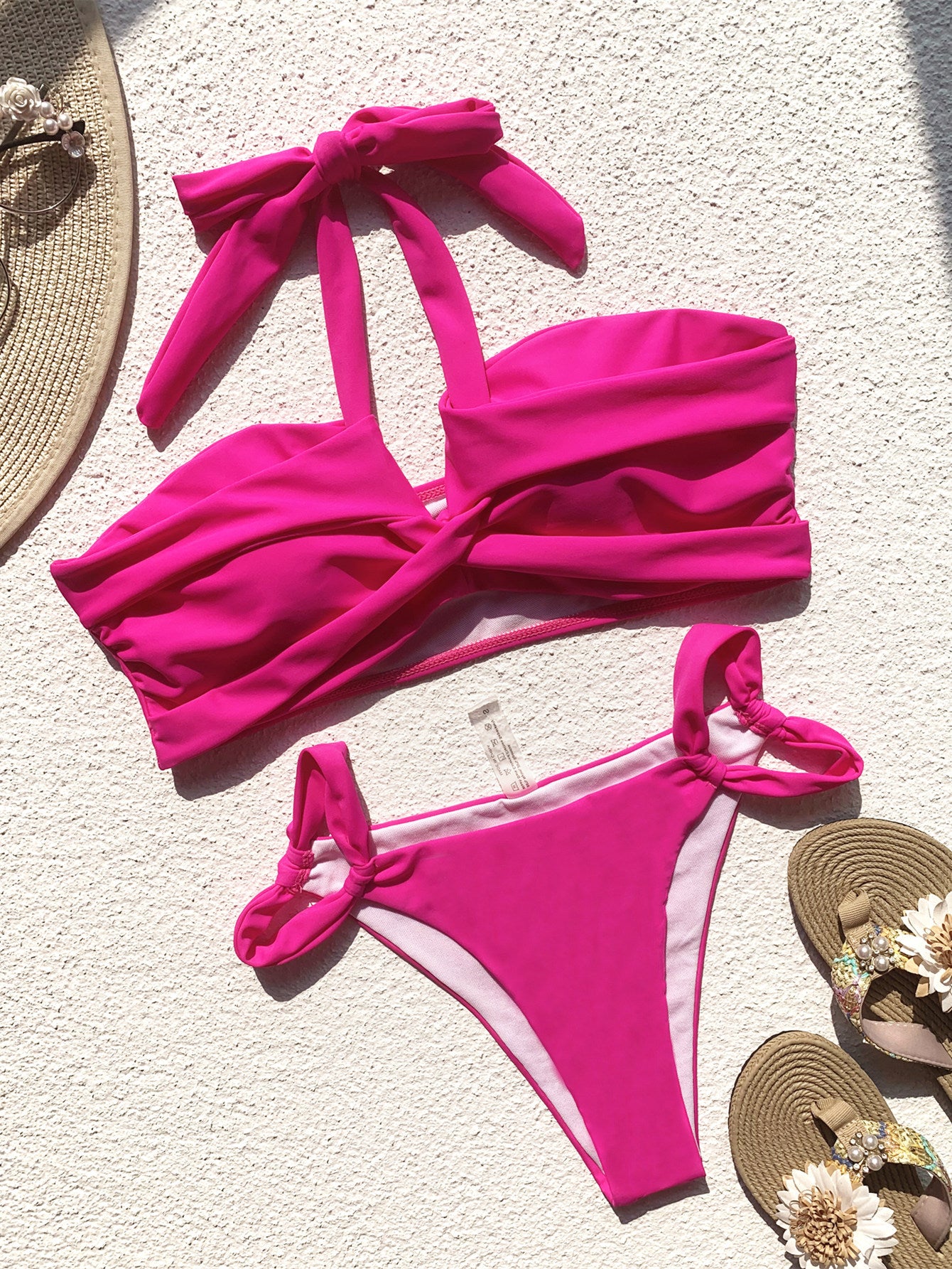 Maillot de bain deux pièces pour femme, couleur unie, coutures, sexy, bretelles