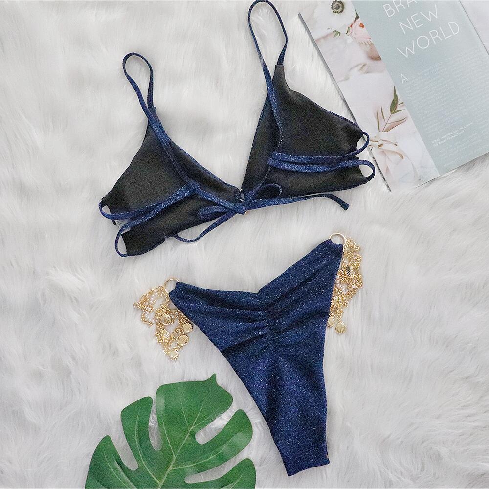 Bikini chaîne en métal perle coquillage accessoires maillot de bain sangle femme maillot de bain