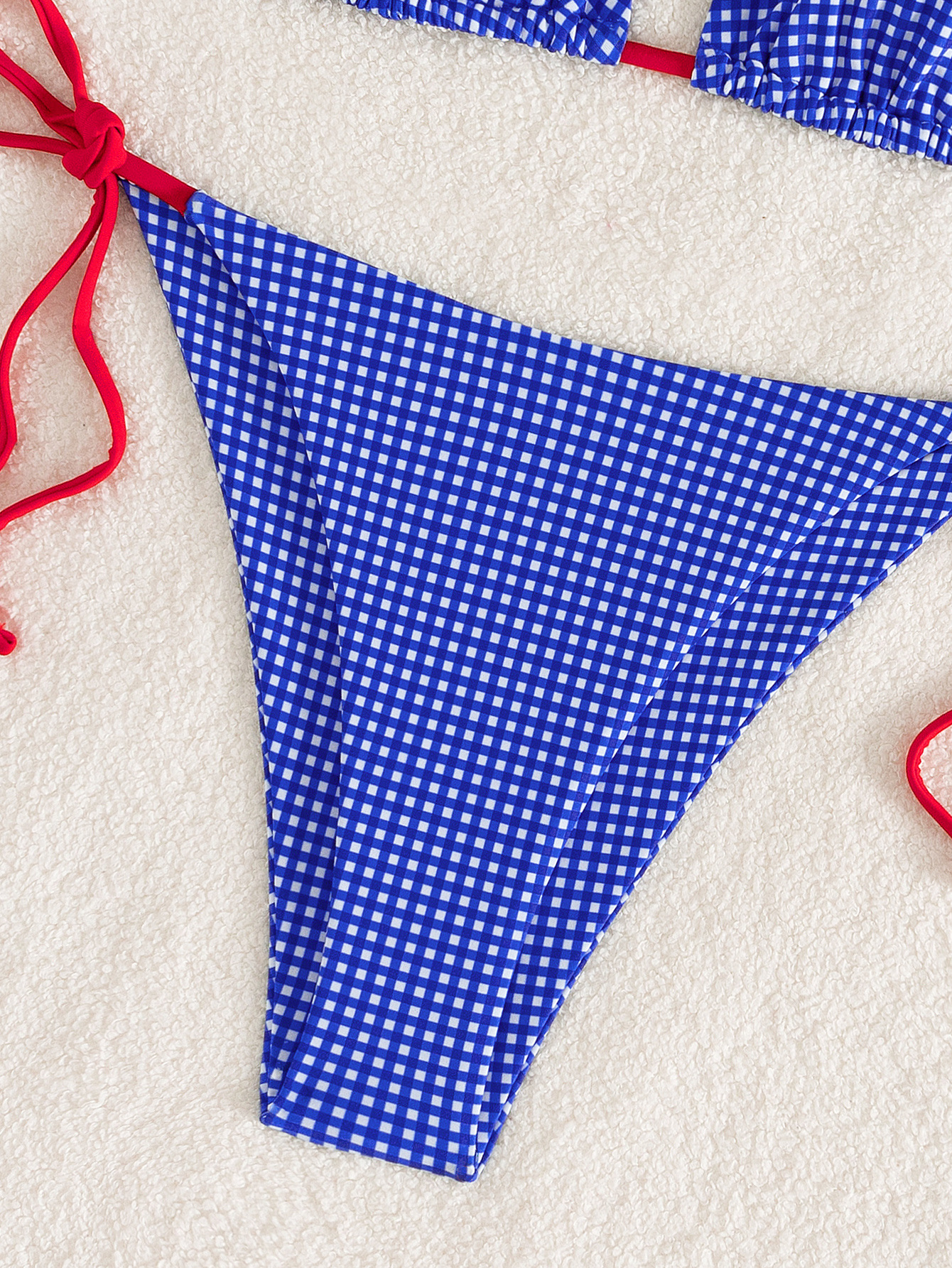 Maillot de bain bikini à carreaux, colorblock, bonnet triangle, lacets, sexy, fendu, pour femme