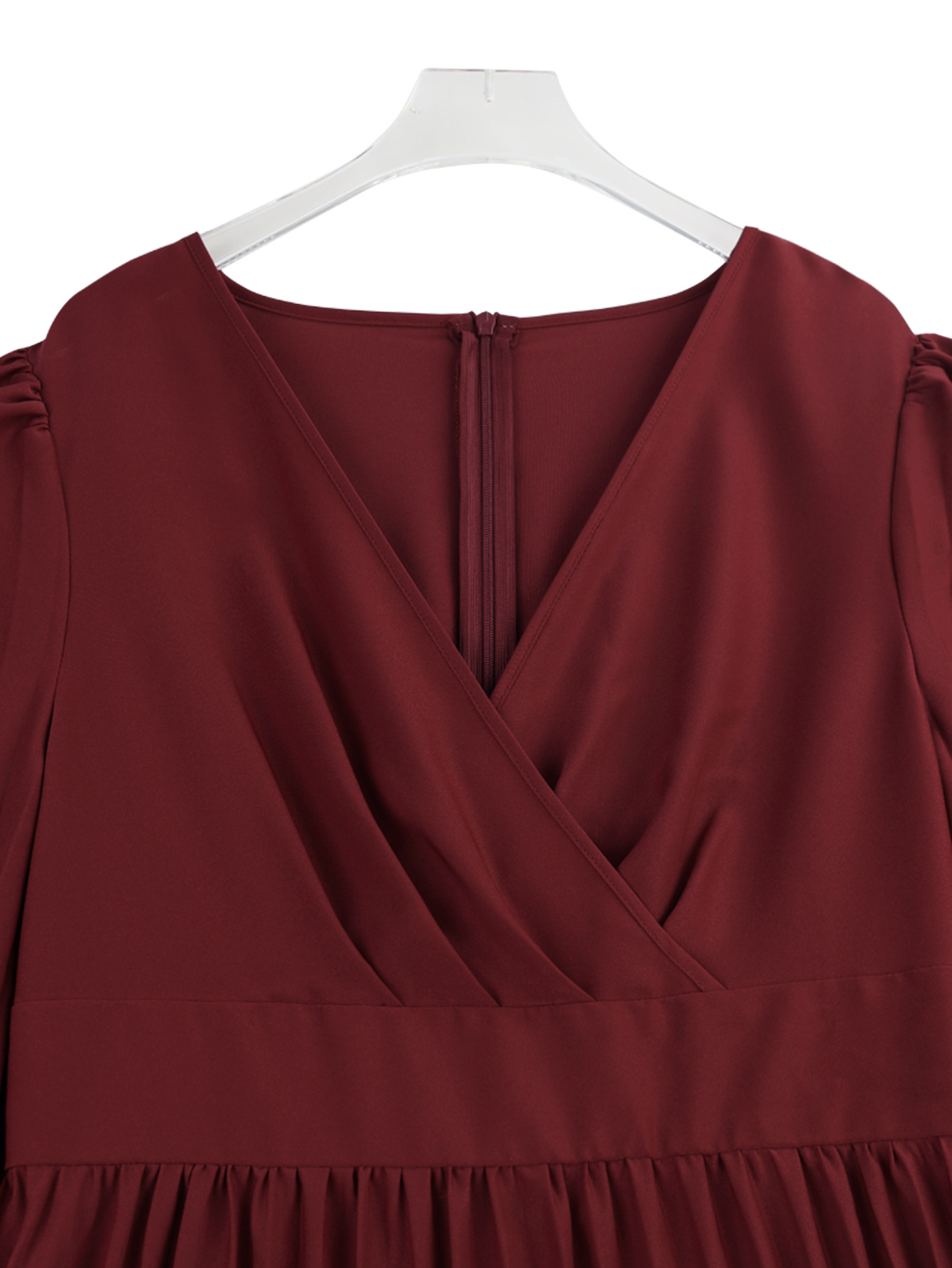 High Waist Maxi Dress Sexy Deep V Plunge Long Sleeve Pleated Bell Sleeve Design Dress