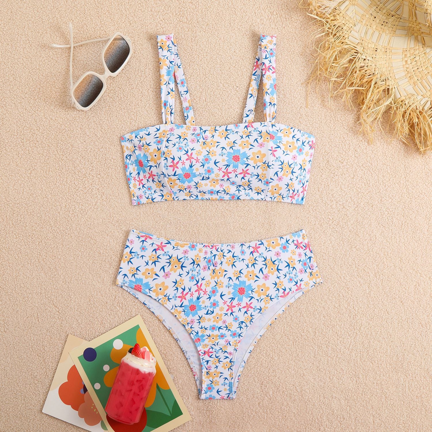 Maillot de bain fendu pour femme, motif floral, frais, haute élasticité, durable, spécial printemps