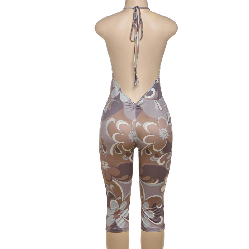 Combinaison d'été sexy dos nu imprimée taille haute amincissante pour femmes
